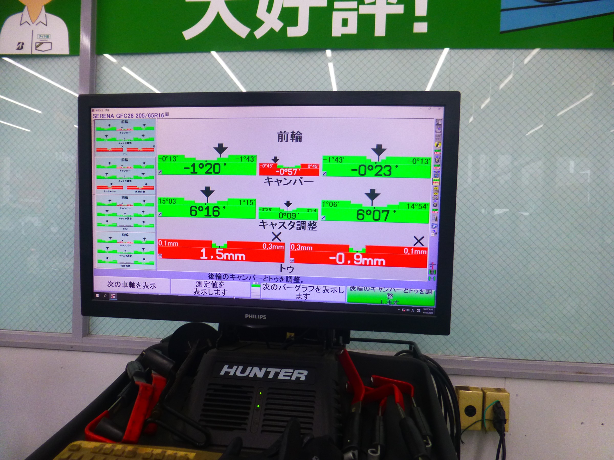 タイヤ交換、アライメント調整を行いました。