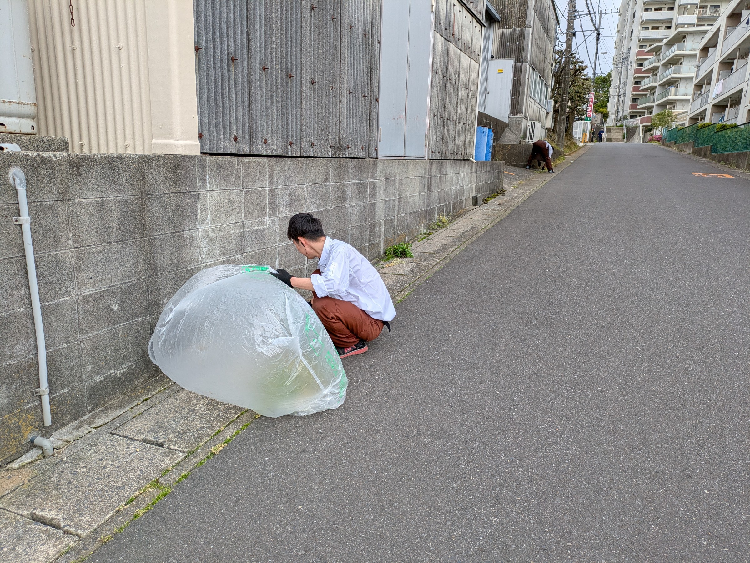 冬タイヤからノーマルタイヤへの履き替えも少し落ち着いたため、お店の裏の除草作業をしました!