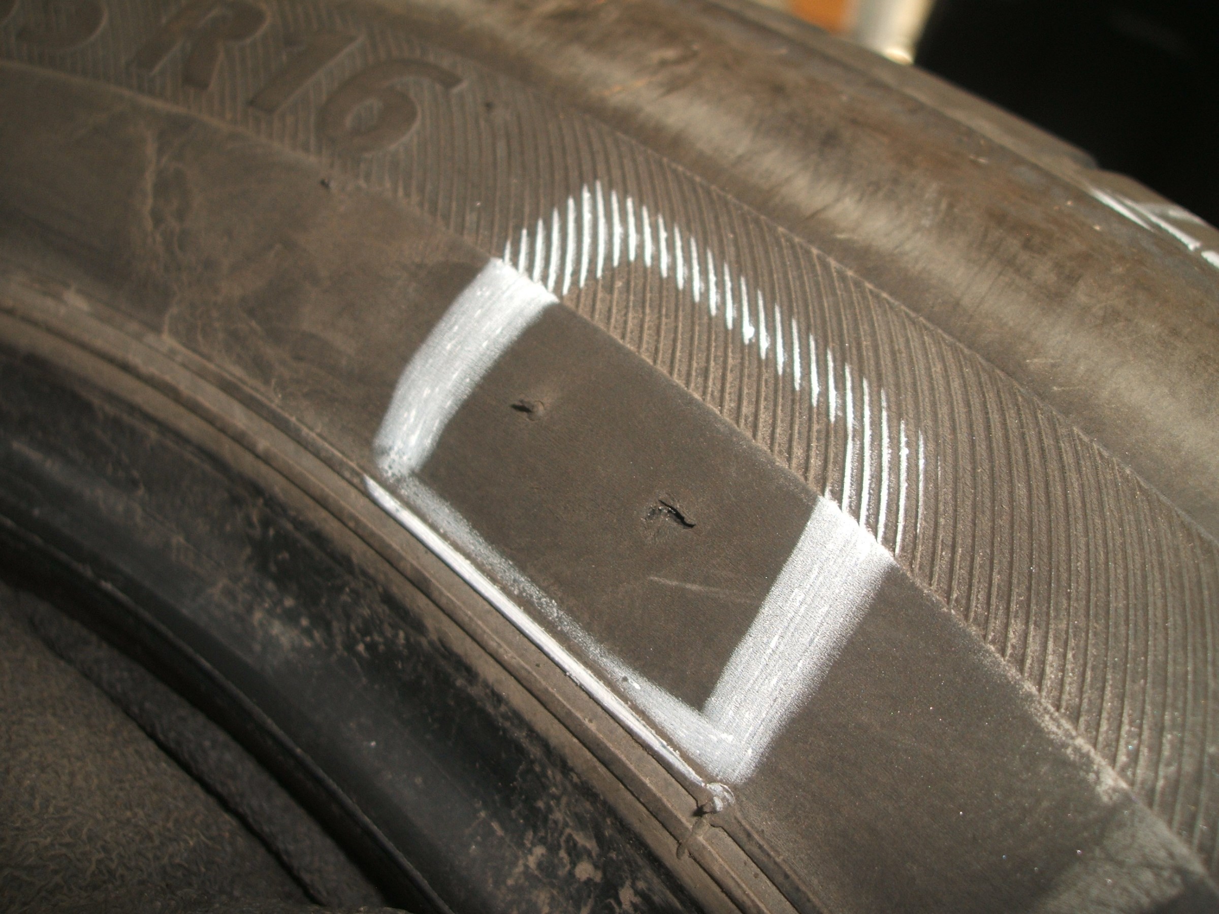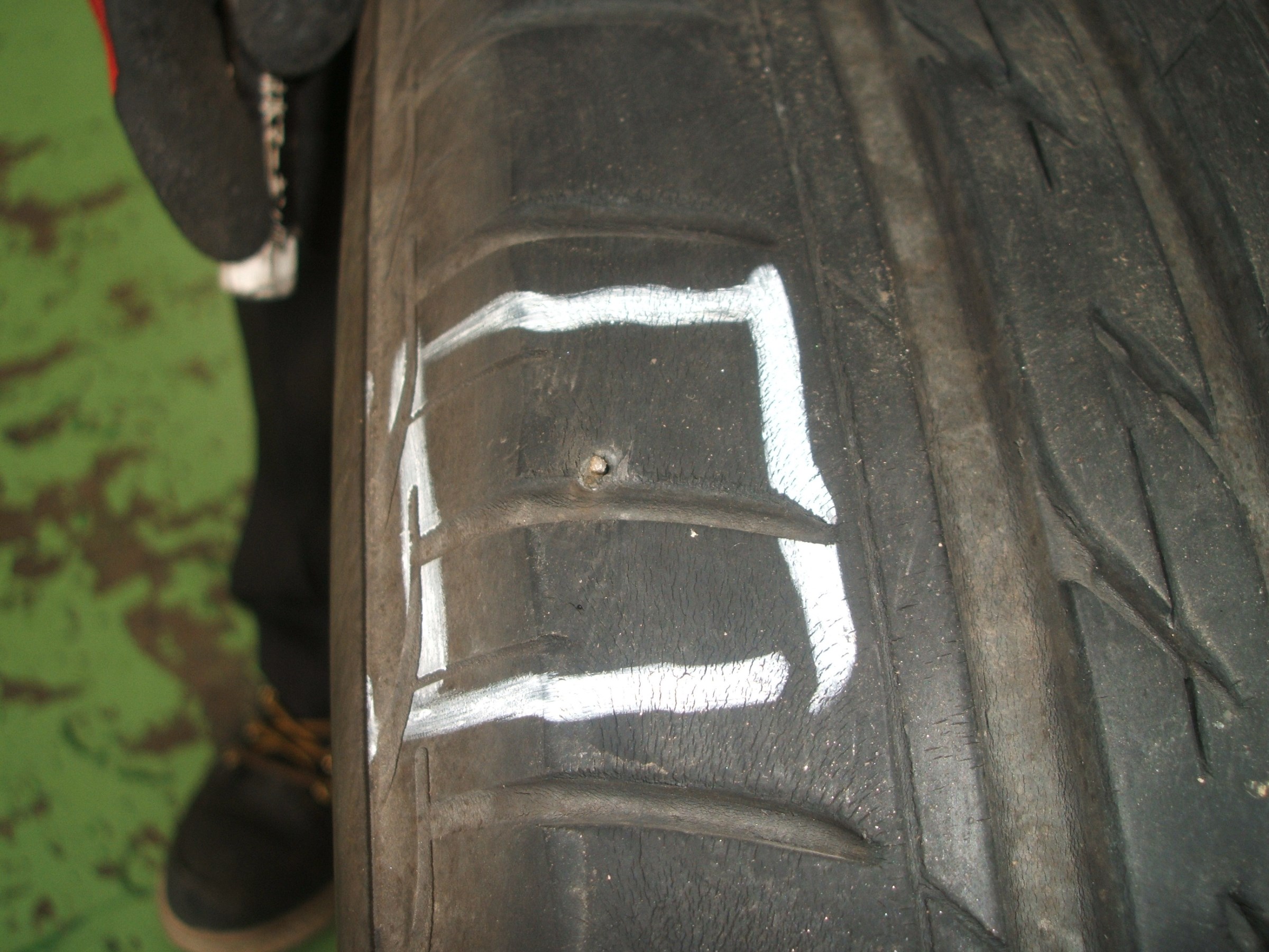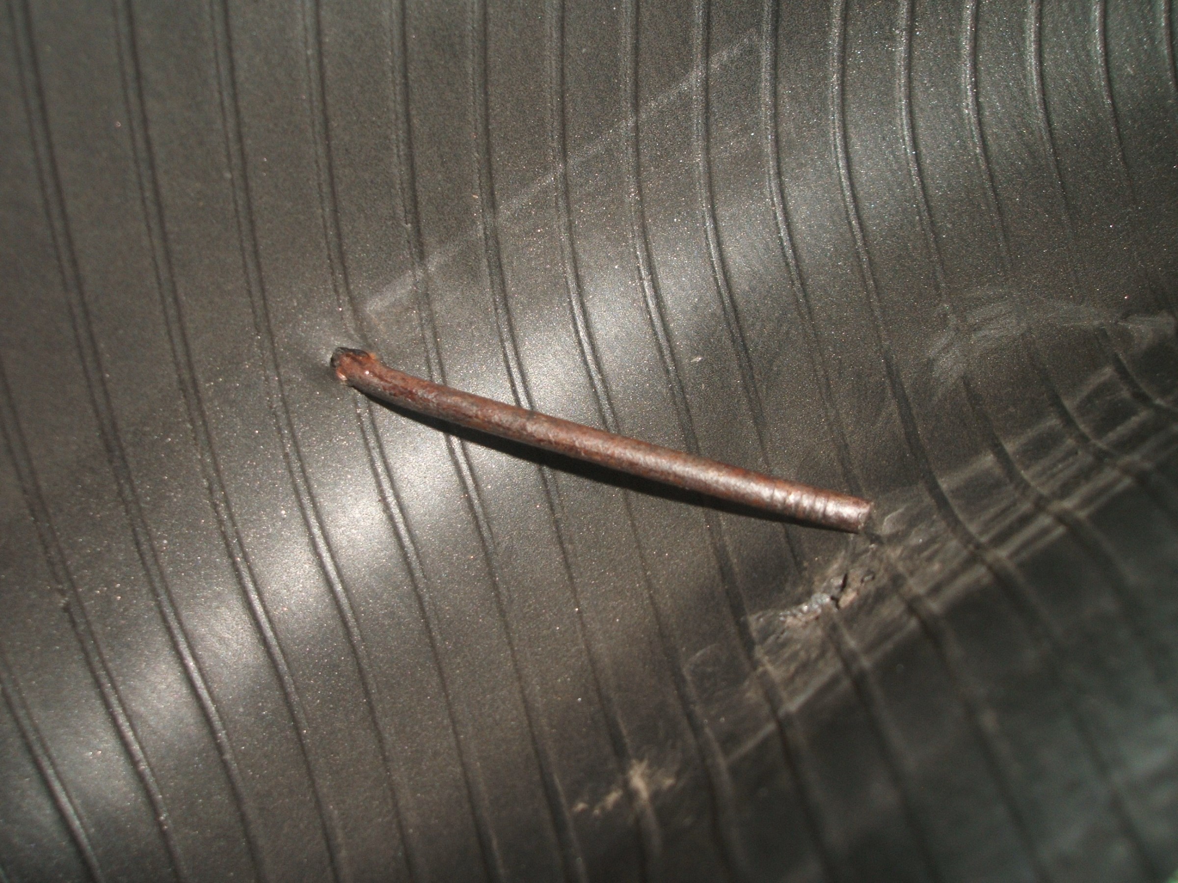 長い釘のようなものが、、内側からタイヤサイドをキズつけ・・・パンク修理が出来ずに交換となりました。
