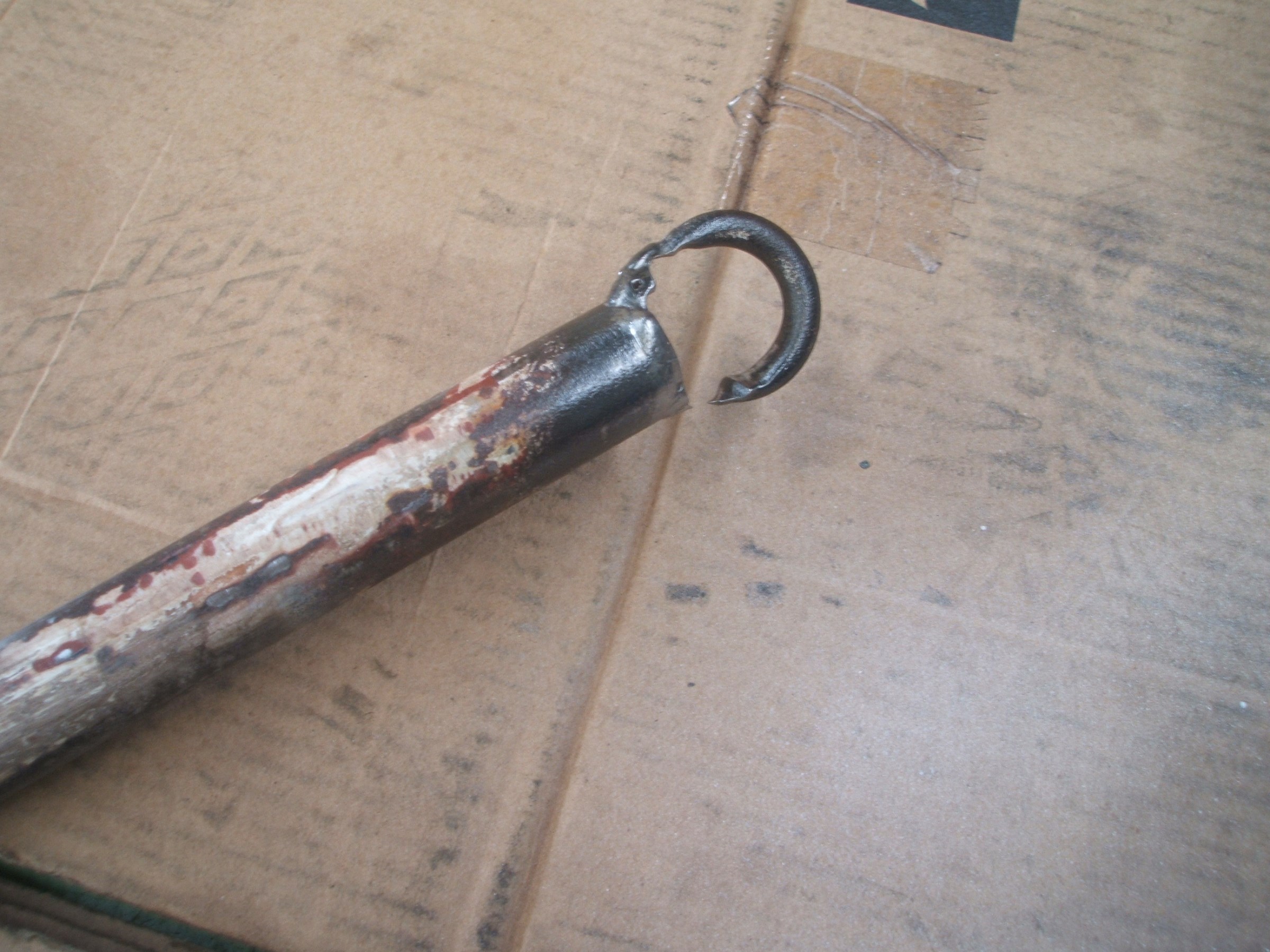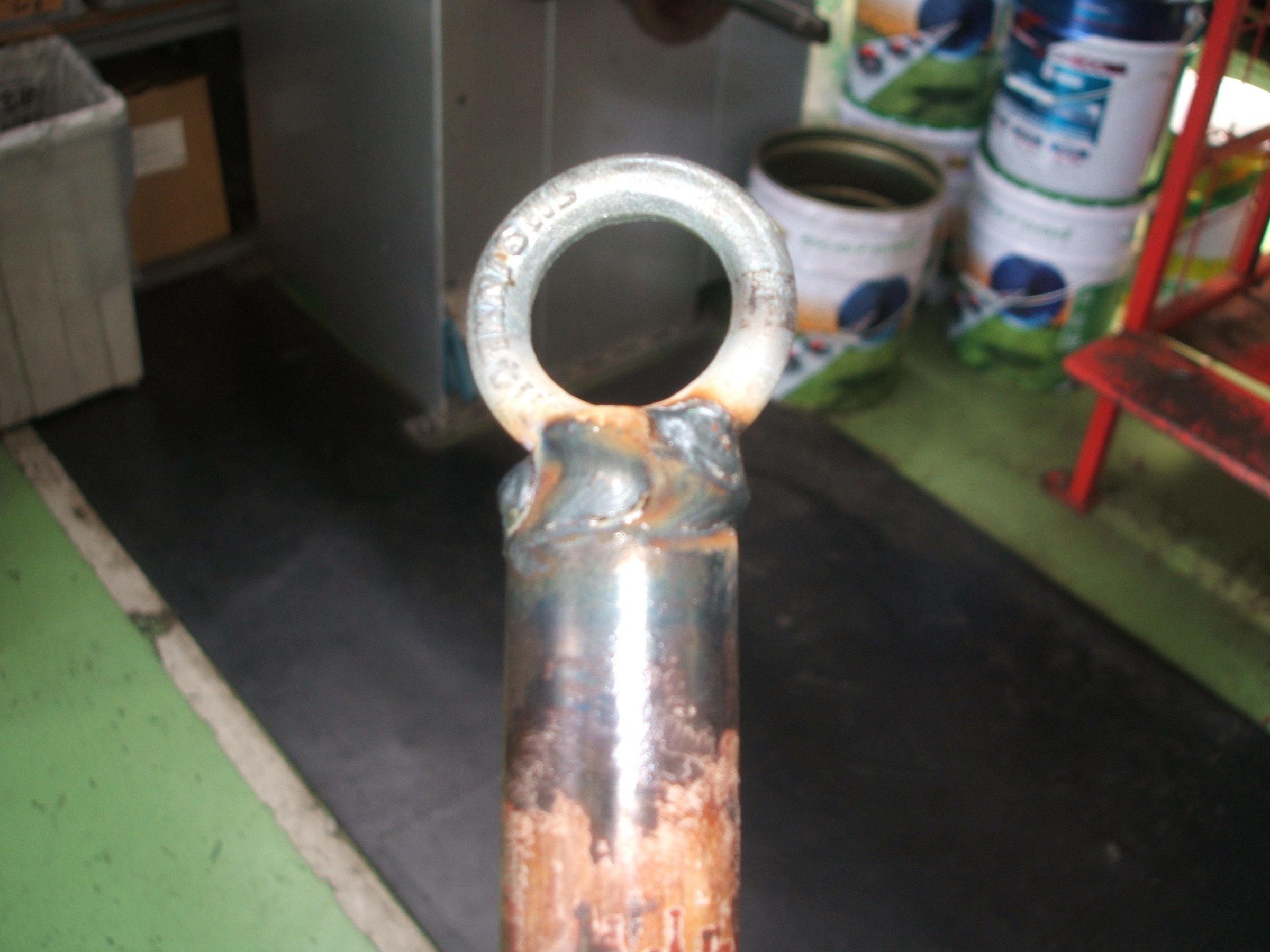 当店の懸垂幕の・・・取り付け棒が・・ワイヤーとの摩擦で、ぱっくり・・・