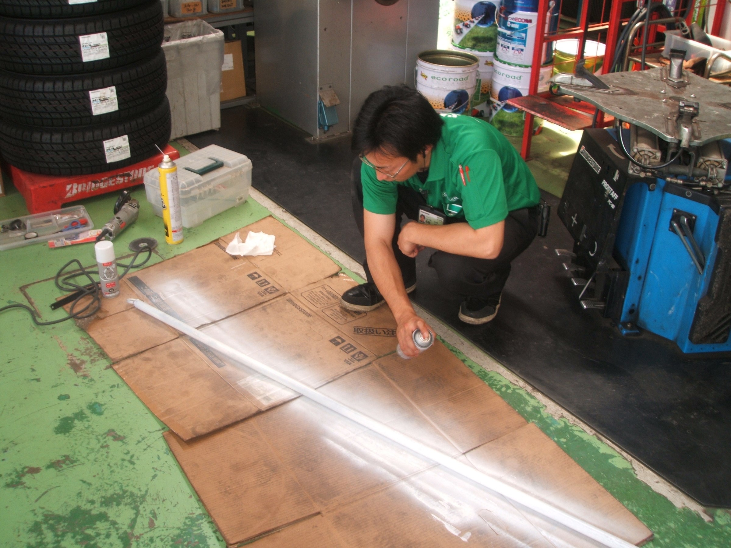 缶スプレーで「しゅ~」と しかし垂れまくりで・・・ぱっと見は上出来ということで
