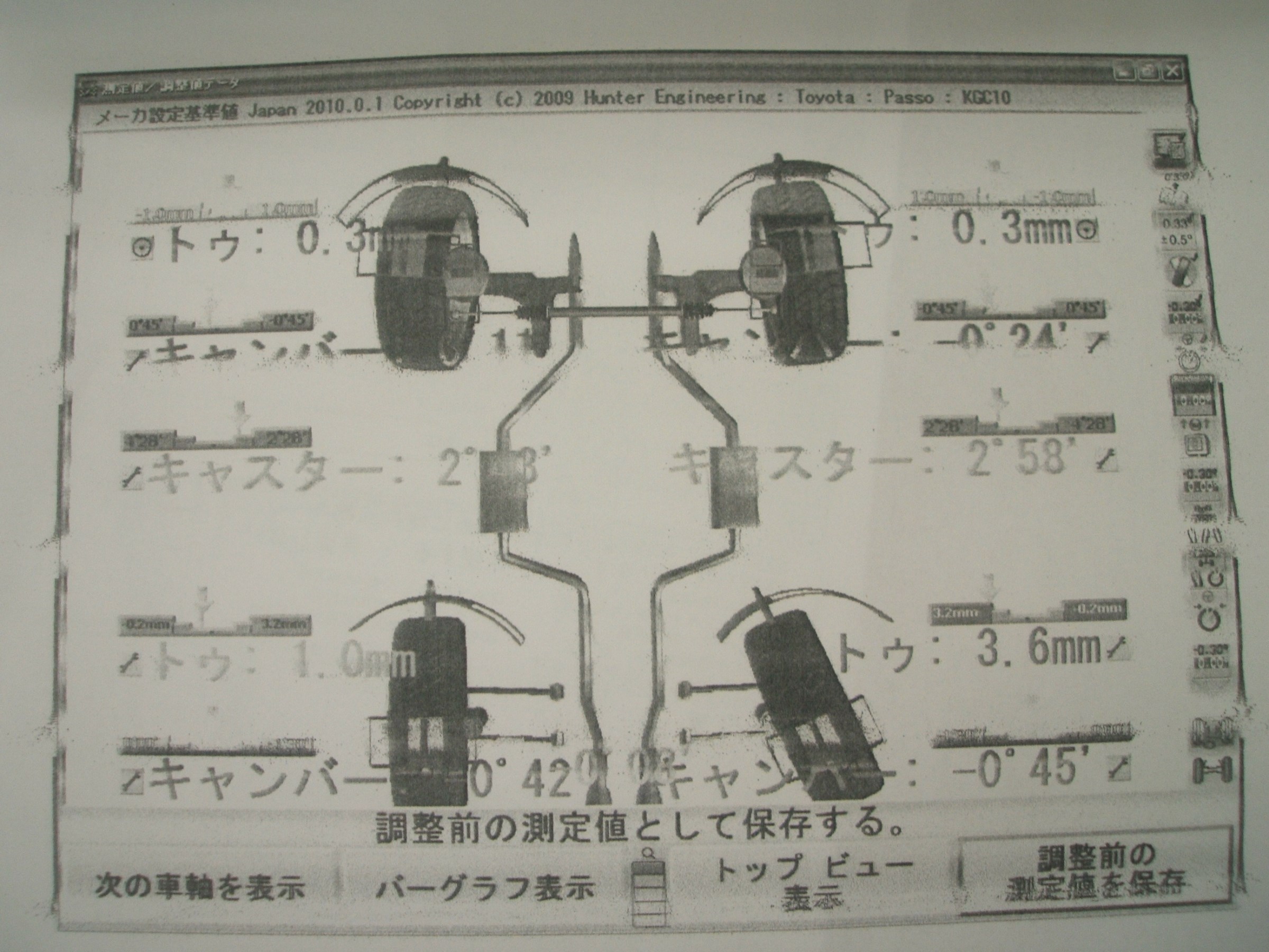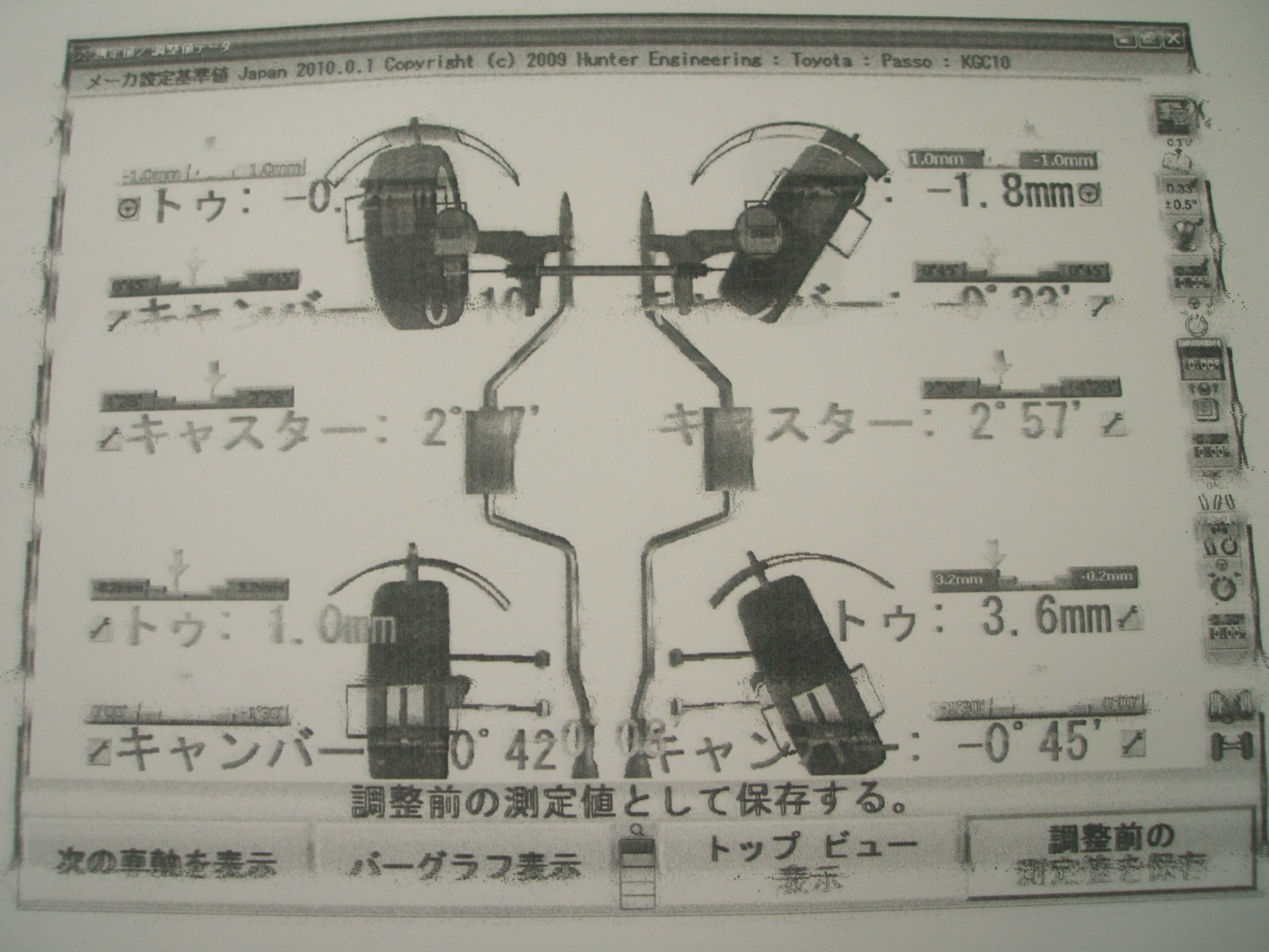 本日はトヨタ・パッソのアライメント調整をご紹介致します。