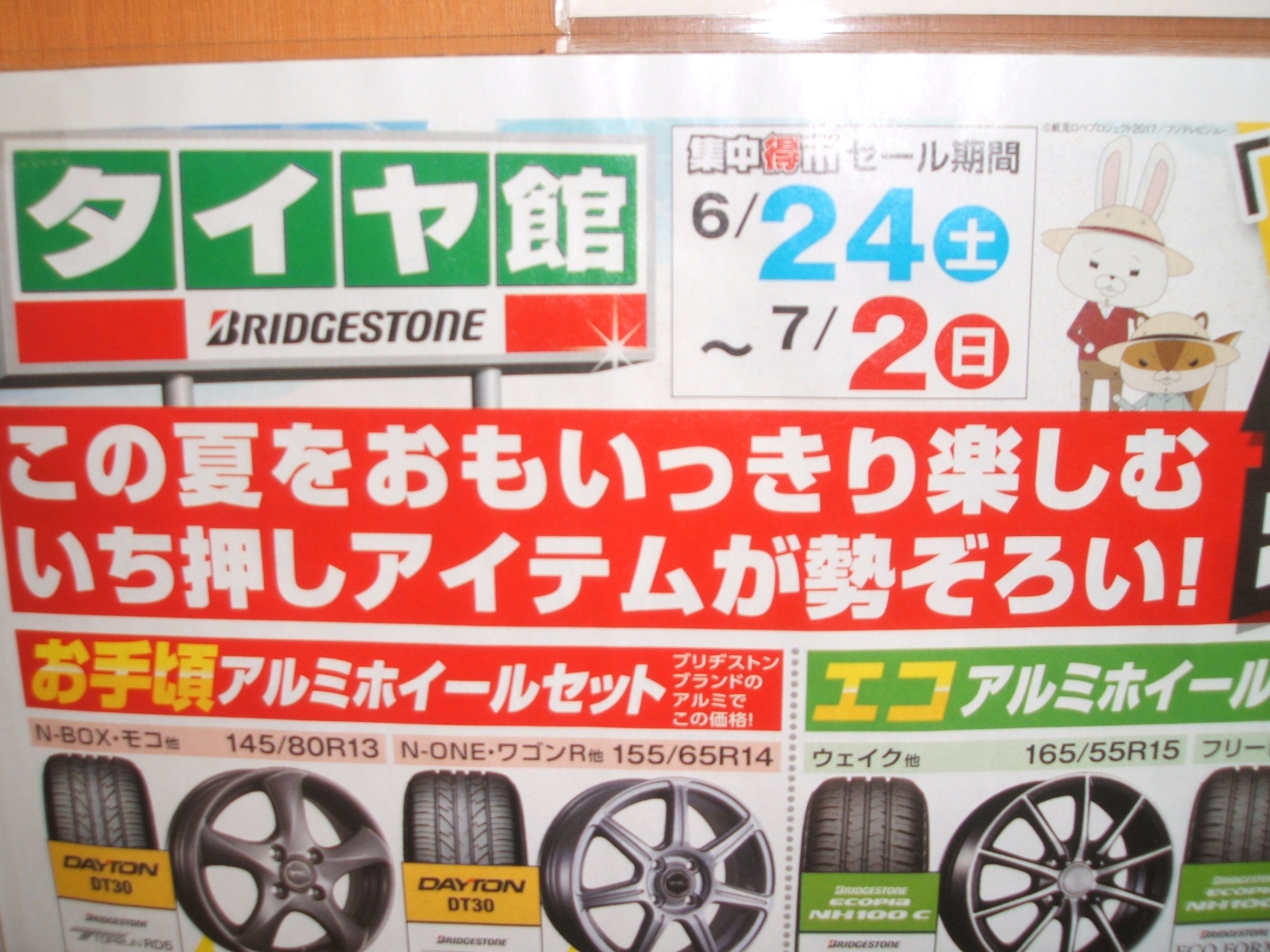 タイヤ館の大売出し、集中得市は7/2までです!