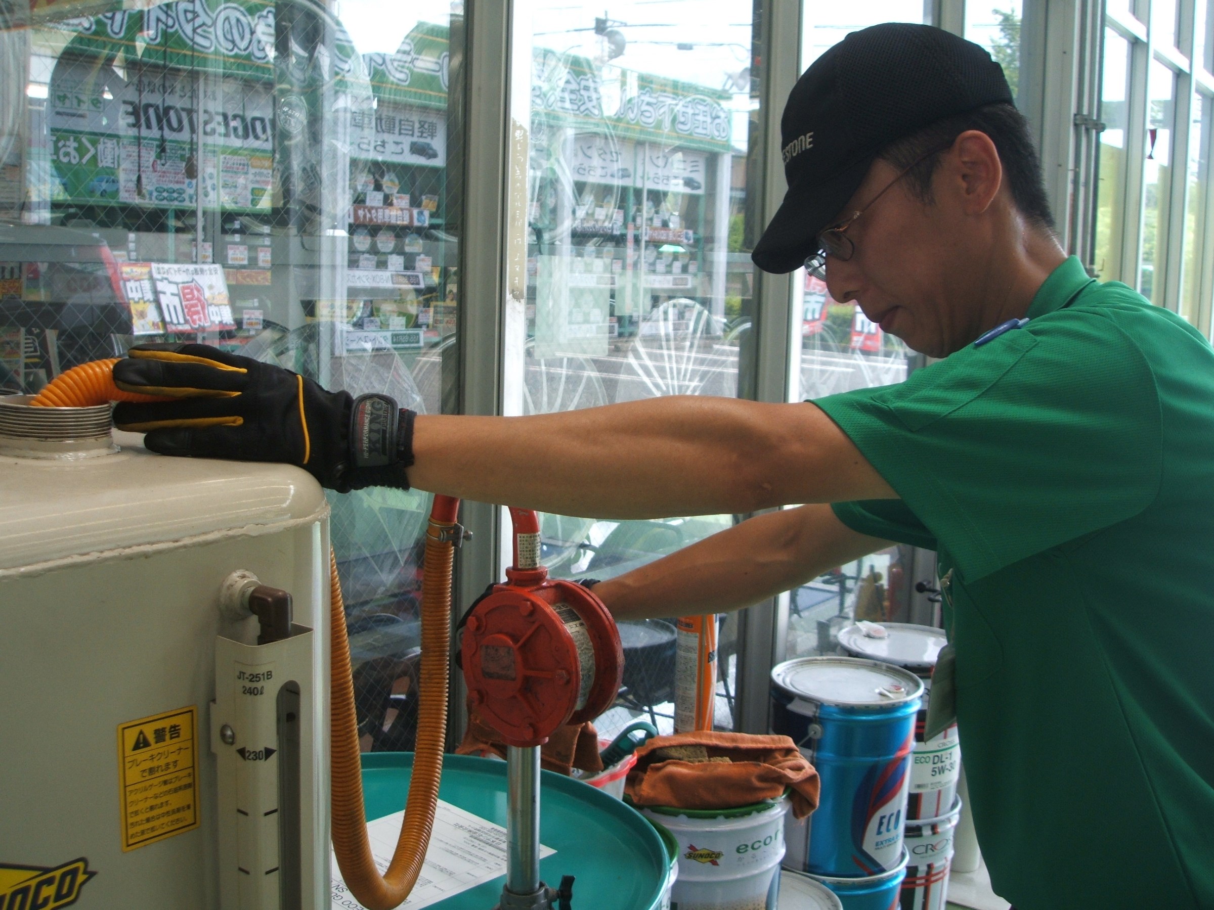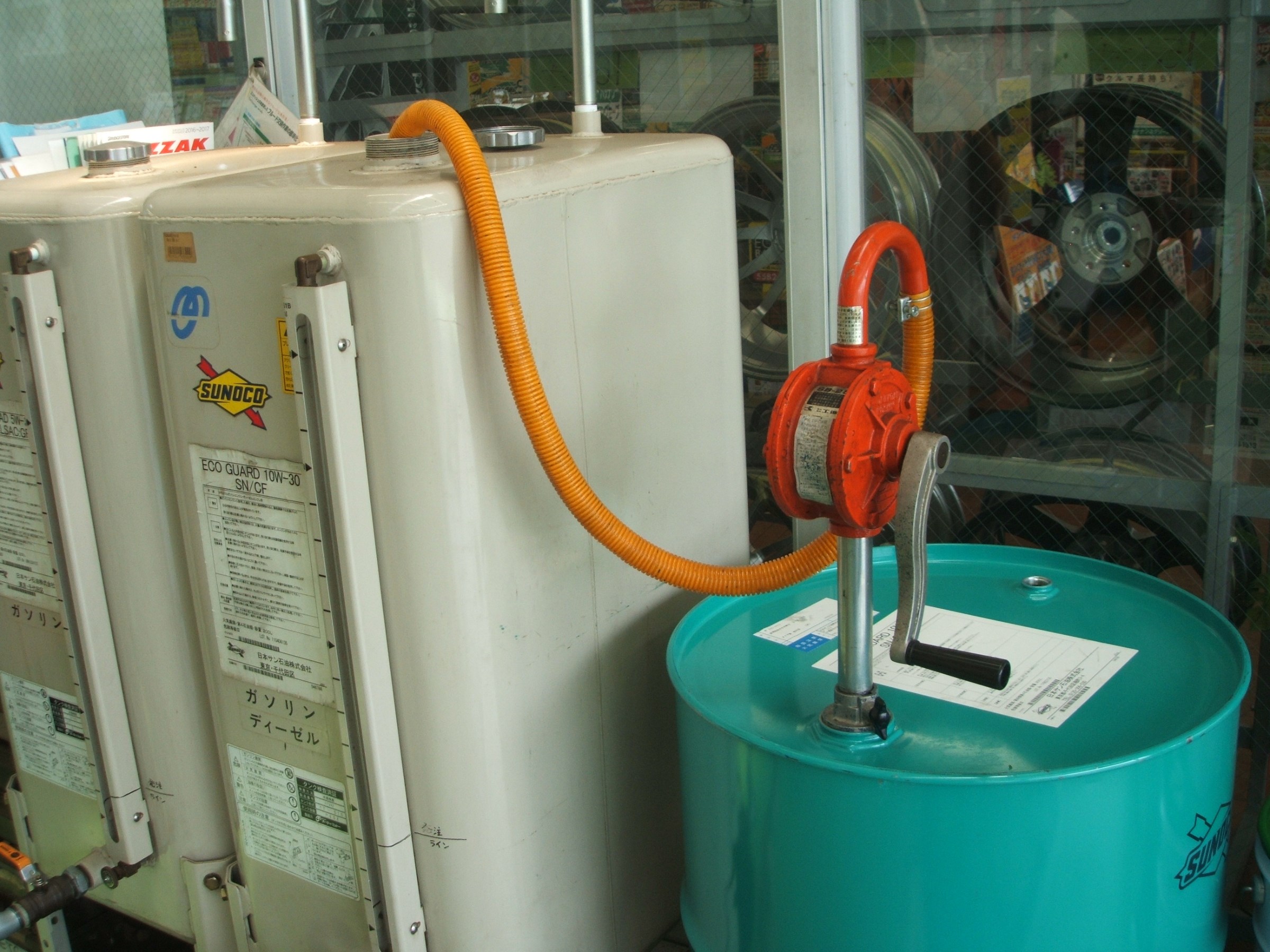 エンジンオイルは種類により、20Lのペール缶で仕入れるものと200Lのドラム缶で仕入れるものがあります。