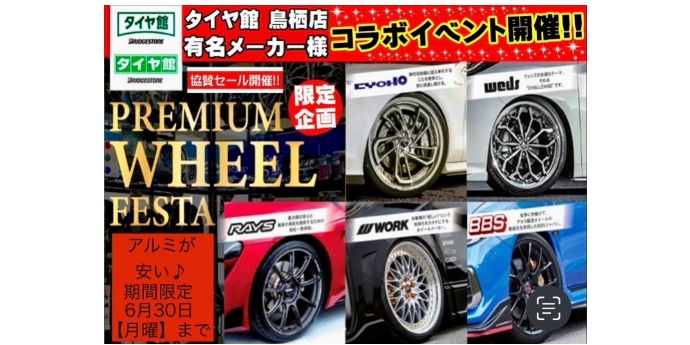 "決算セールの為!" 主要取り扱いメーカー様分の店舗在庫品(アウトレット)をお安く大大大処分市を開催♪(๑ᴖ◡ᴖ๑)♪ ※豪華有名メーカー様(BBS・RAYS・WORK・Weds・共豊)と限定コラボ企画! プレミアムアルミホイールフェスタ カスタマイズキャンペーン 開催!★