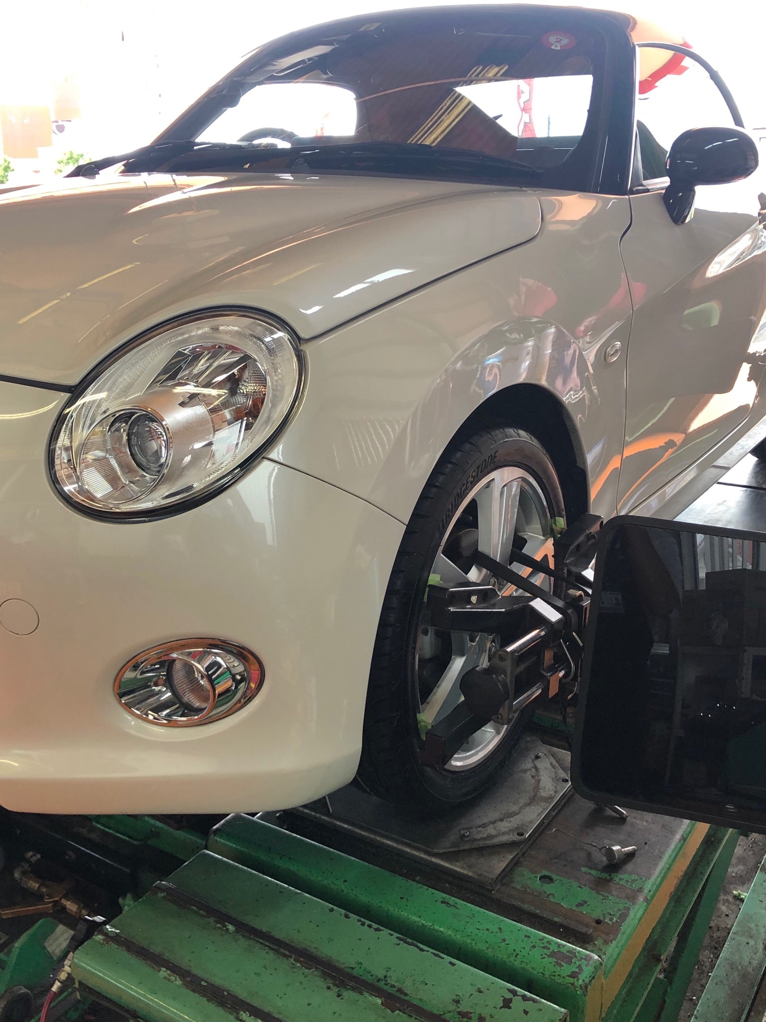 先日、コペンにタイヤ交換とアライメント調整をさせて頂きました!!
