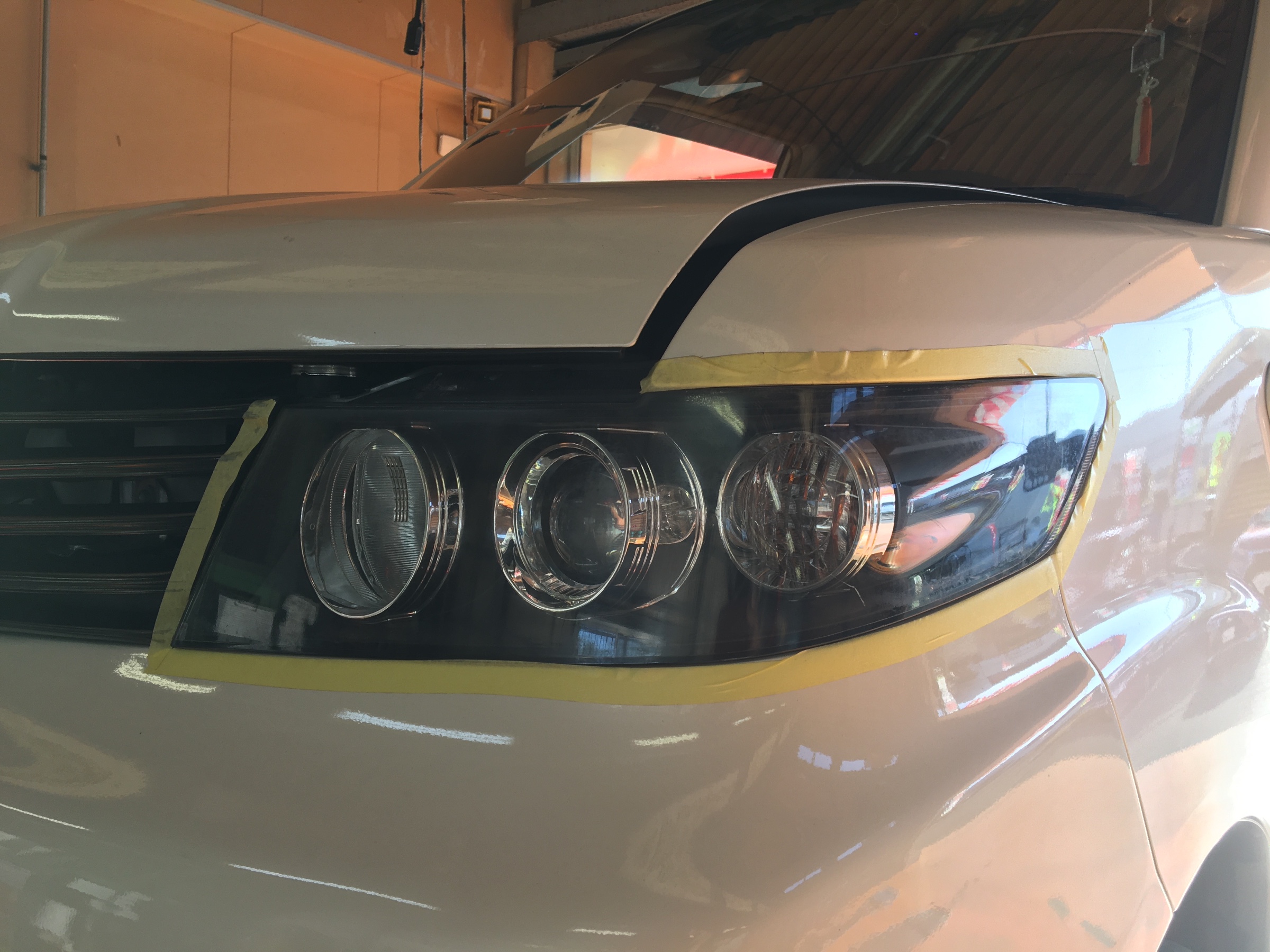 ↑お客様のお車にヘッドライトの黄ばみ取り+コーティング施工「anyany」をやりましたー♬♬♬