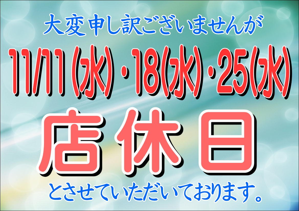 明日11/11(水)は店休日となっております。