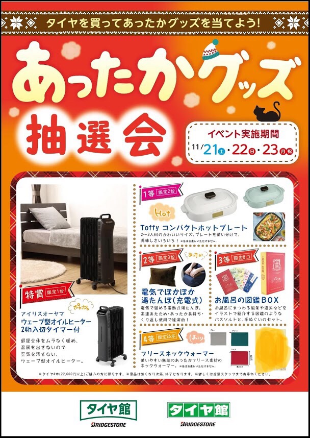 タイヤ4本又は22,000円(税込)以上お買い上げの方が参加できます。