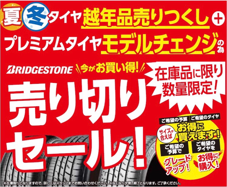 ☆★"年内最終売り尽くしセール開催"★☆ ポスト 2020年12月10日 皆様、お世話になっております! 鳥栖市の県道17号線沿いにあります、 タイヤ館 鳥栖店 店長の増田です!! 「2016年~2018年製タイヤ」の、 夏用・冬用、年内最終売り尽くしセール開催致します!! 現品限りになりますのでお早めにお越しください。見積もりだけでも大歓迎です!! コロナ対策をしスタッフ一同心よりご来店お待ちしていおります!! タイヤ館鳥栖 〒841-0083 佐賀県 鳥栖市 古賀町字花ノ木534-2 ℡0942-81-3295 カテゴリ:お知らせ