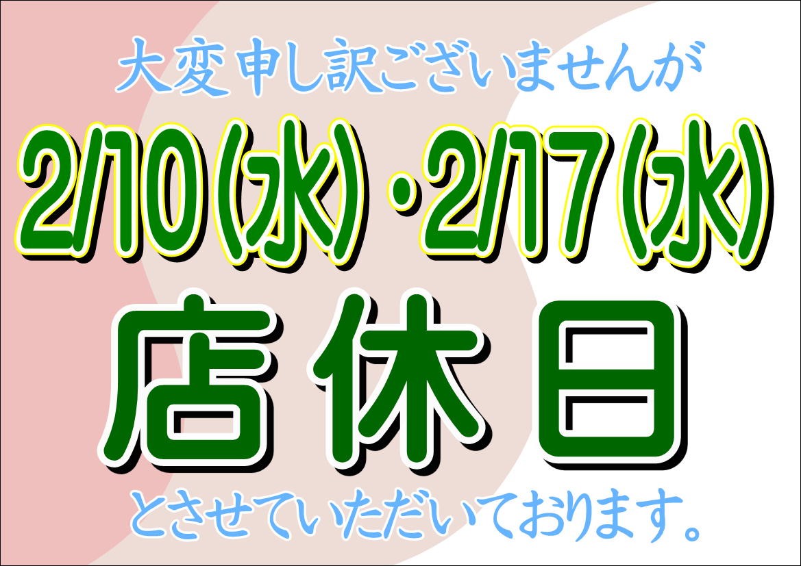 明日2/17(水)は店休日となっております。