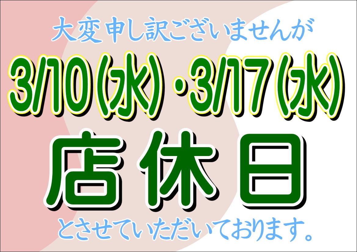 明日3/10(水)は店休日となっております。