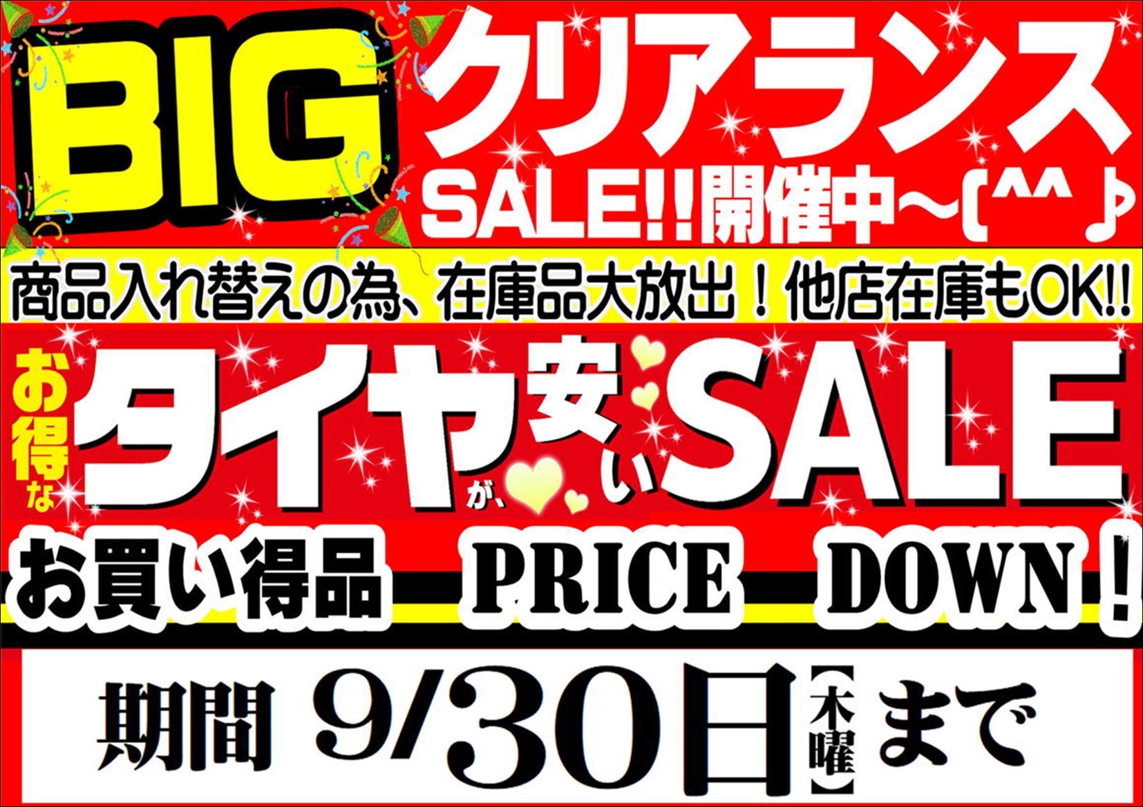 ★☆『BIG クリアランス SALE!』開催♬ タイヤが安い!!!!!