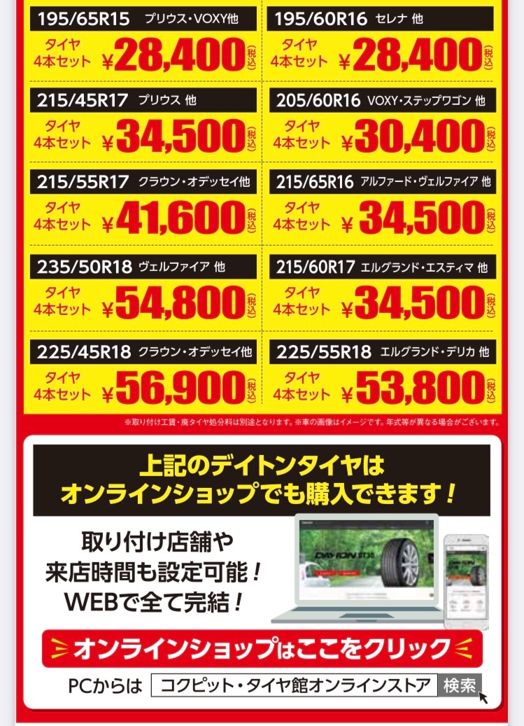 モデルチェンジ品、長期在庫品、スタッドレスタイヤなど、