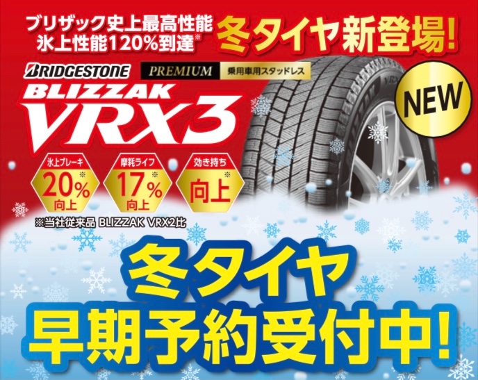 新商品!! BLIZZAK VRX3/スタッドレスタイヤ