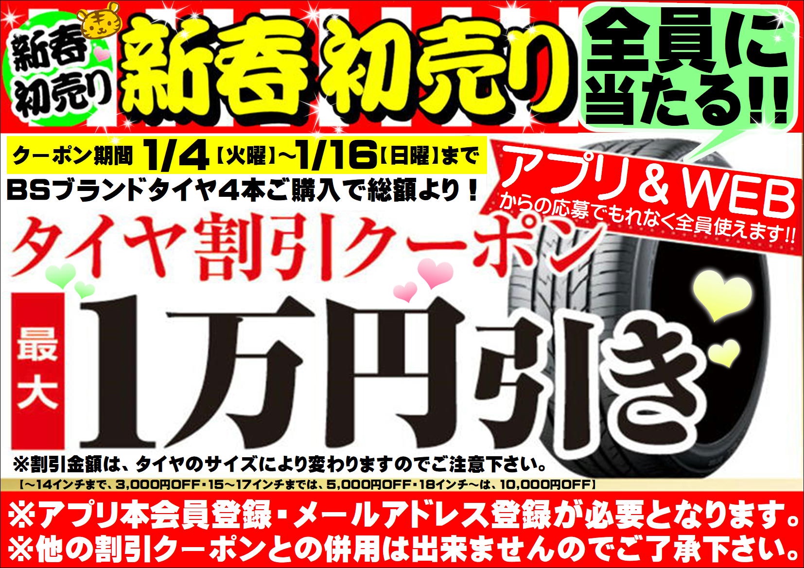 抽選で最大タイヤ1万円割引クーポンが当たっちゃいます ♪