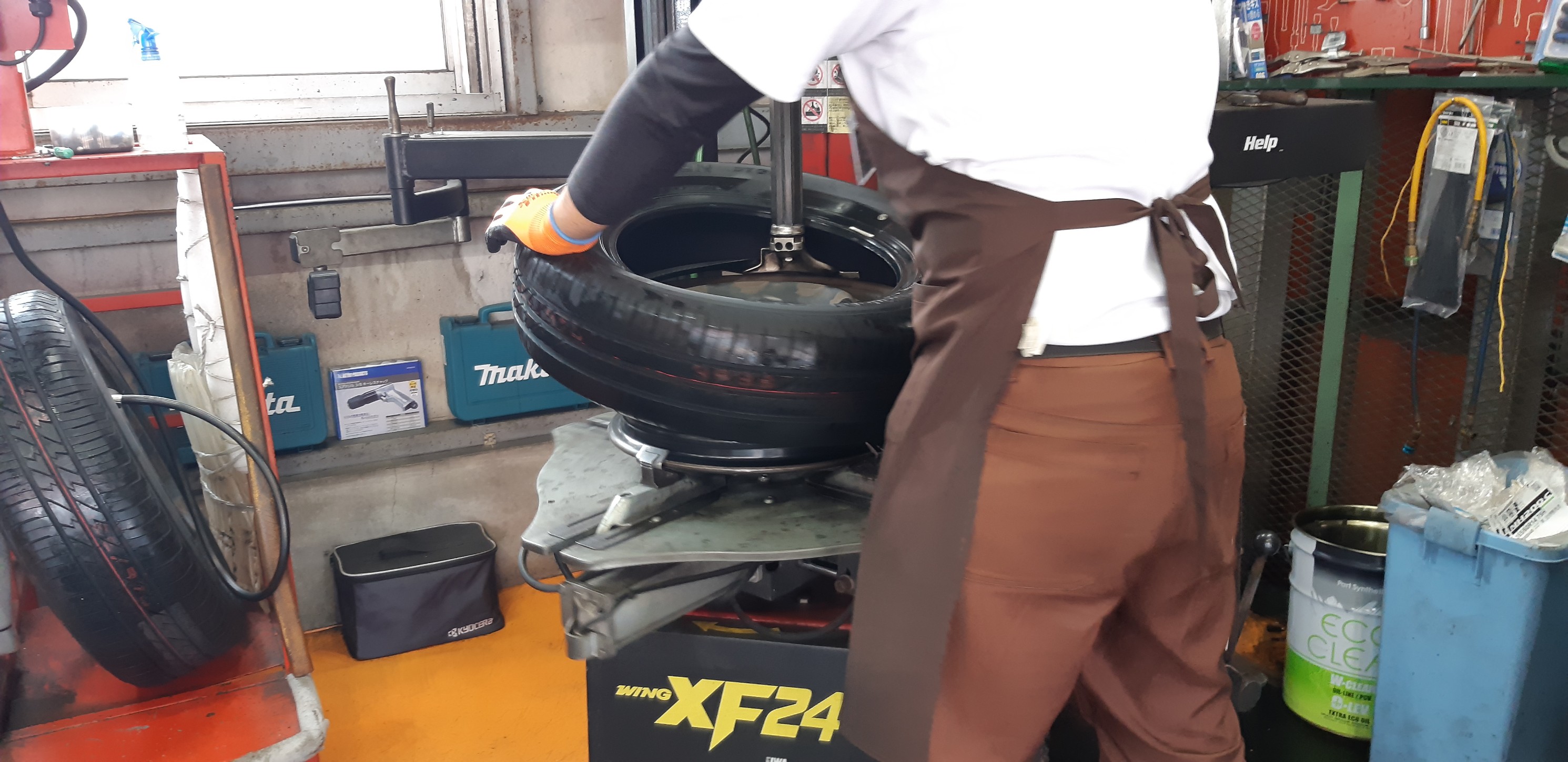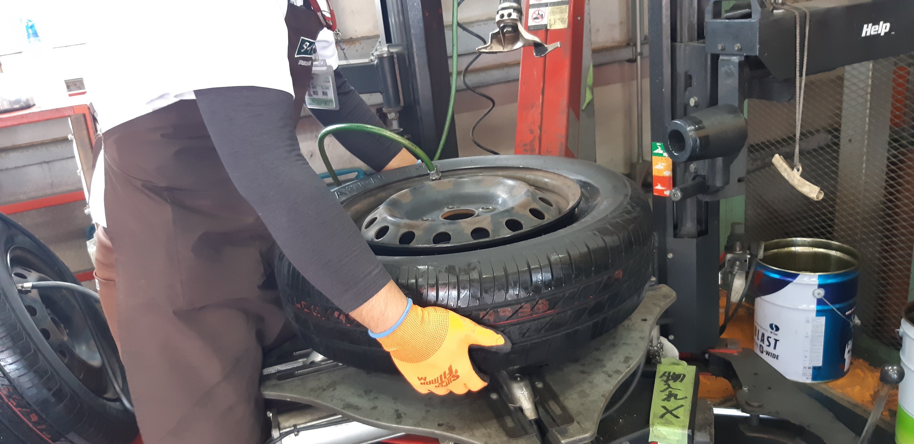 先日ご案内しておりましたタイヤ取り付け風景の一部です。