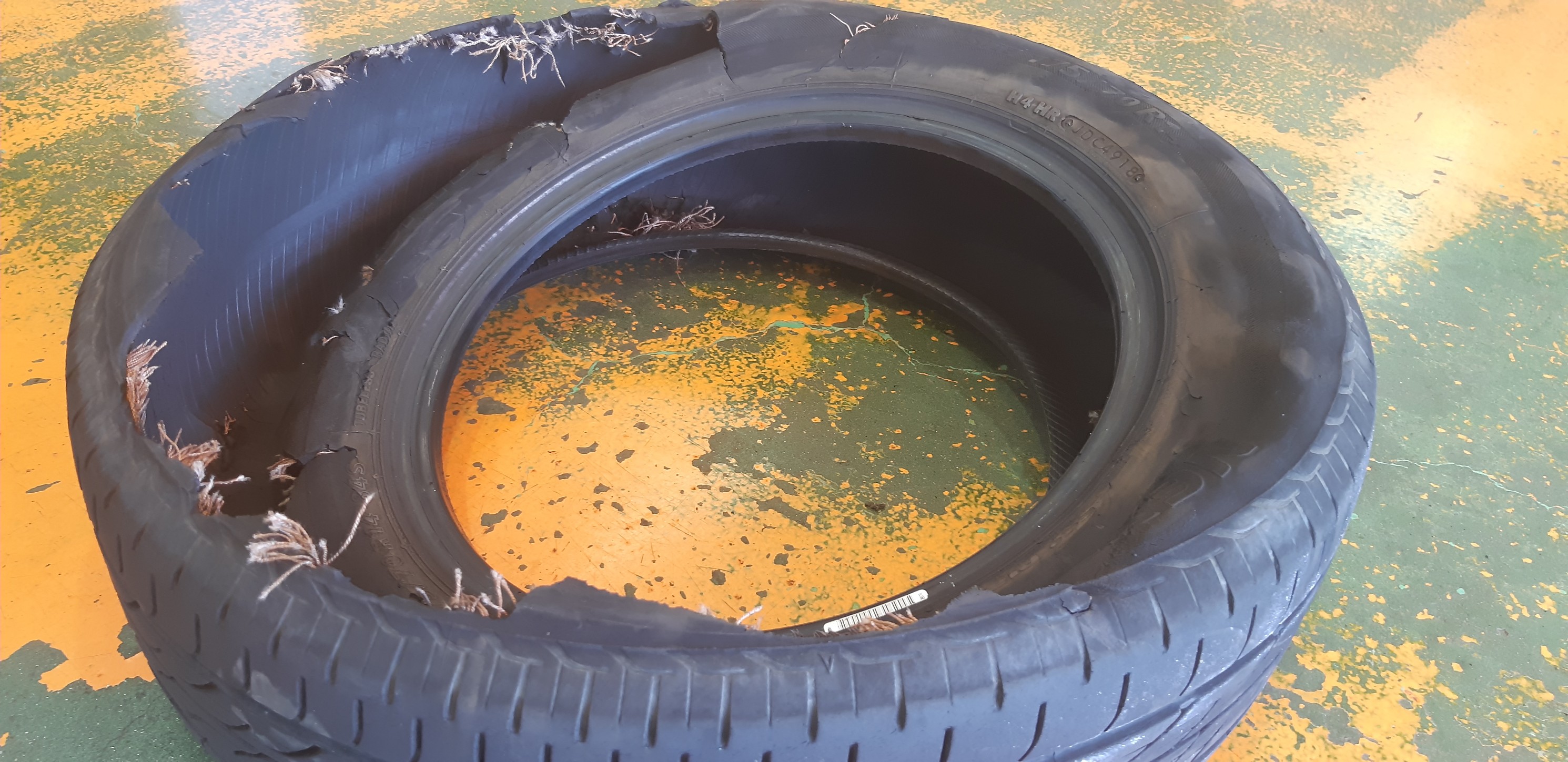 タイヤ本体はもちろん、空気圧を支える働きをするコードも全体的にちぎれてしまっていますね (´・ω・`)