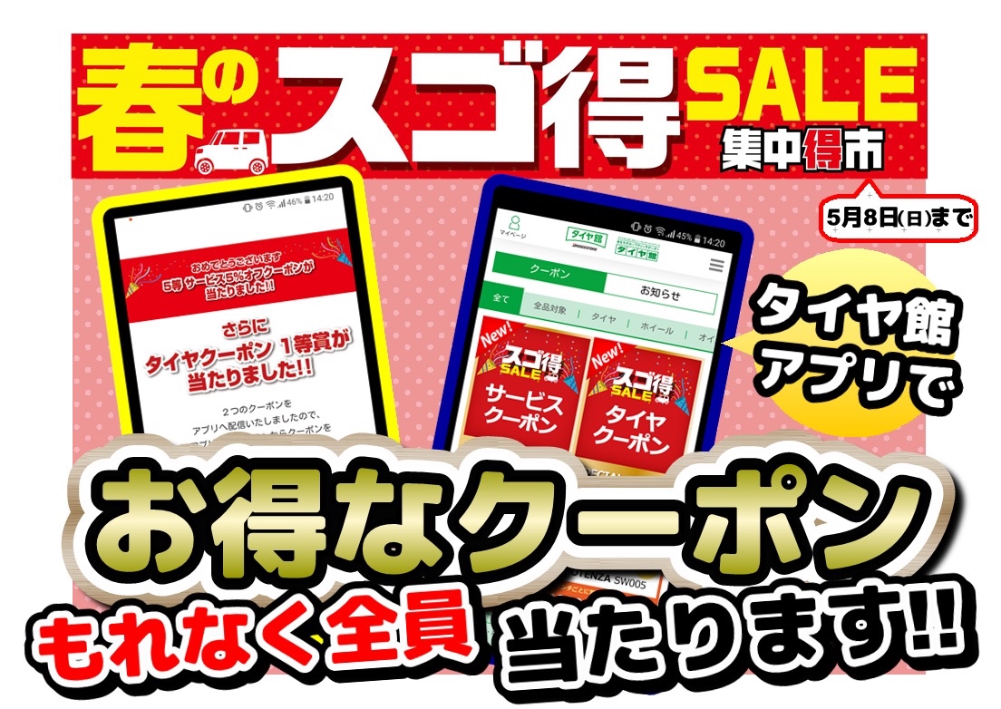 店頭またはタイヤ館アプリからクーポンをゲットして
