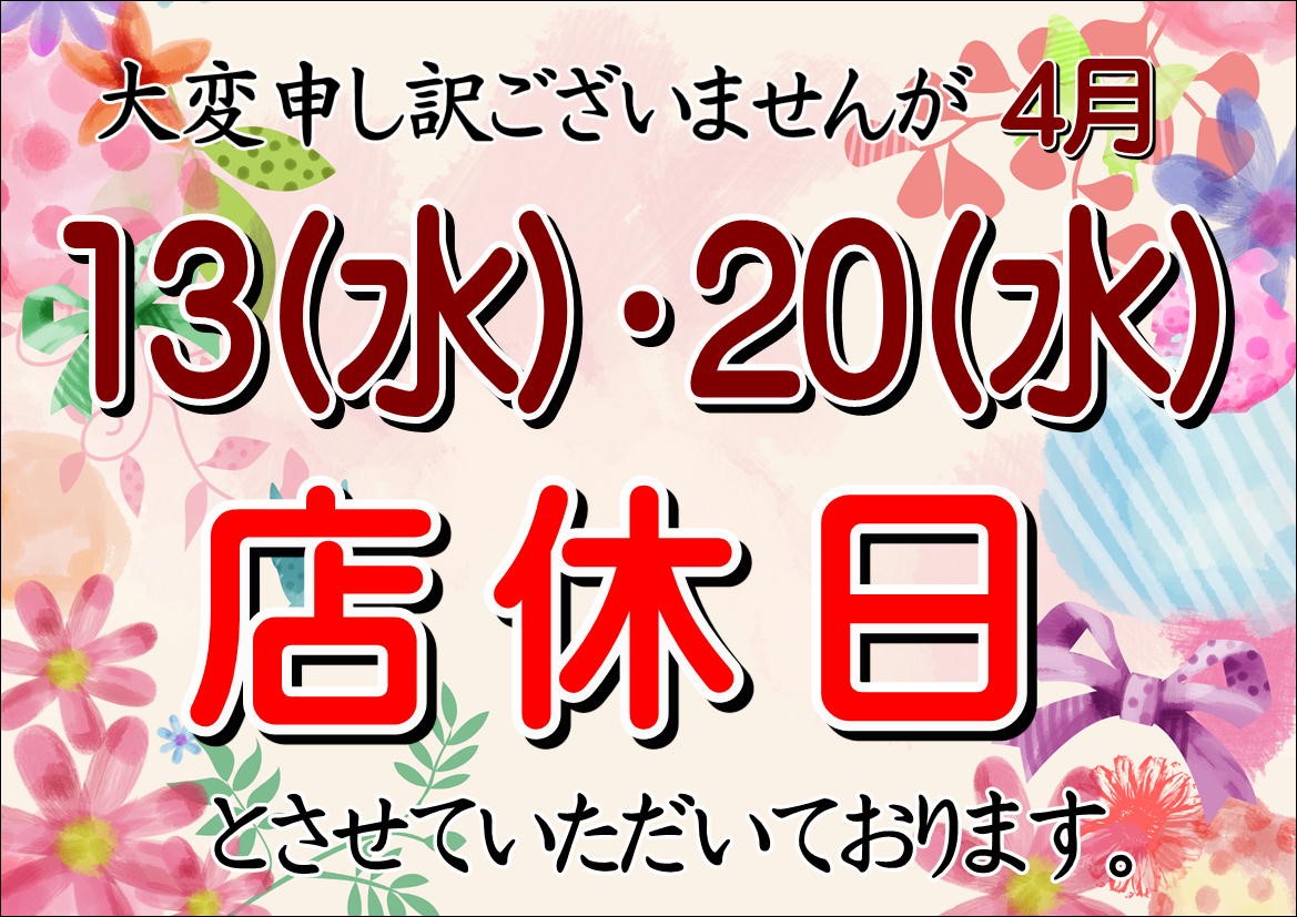 明日4/20(水)は店休日となっております。
