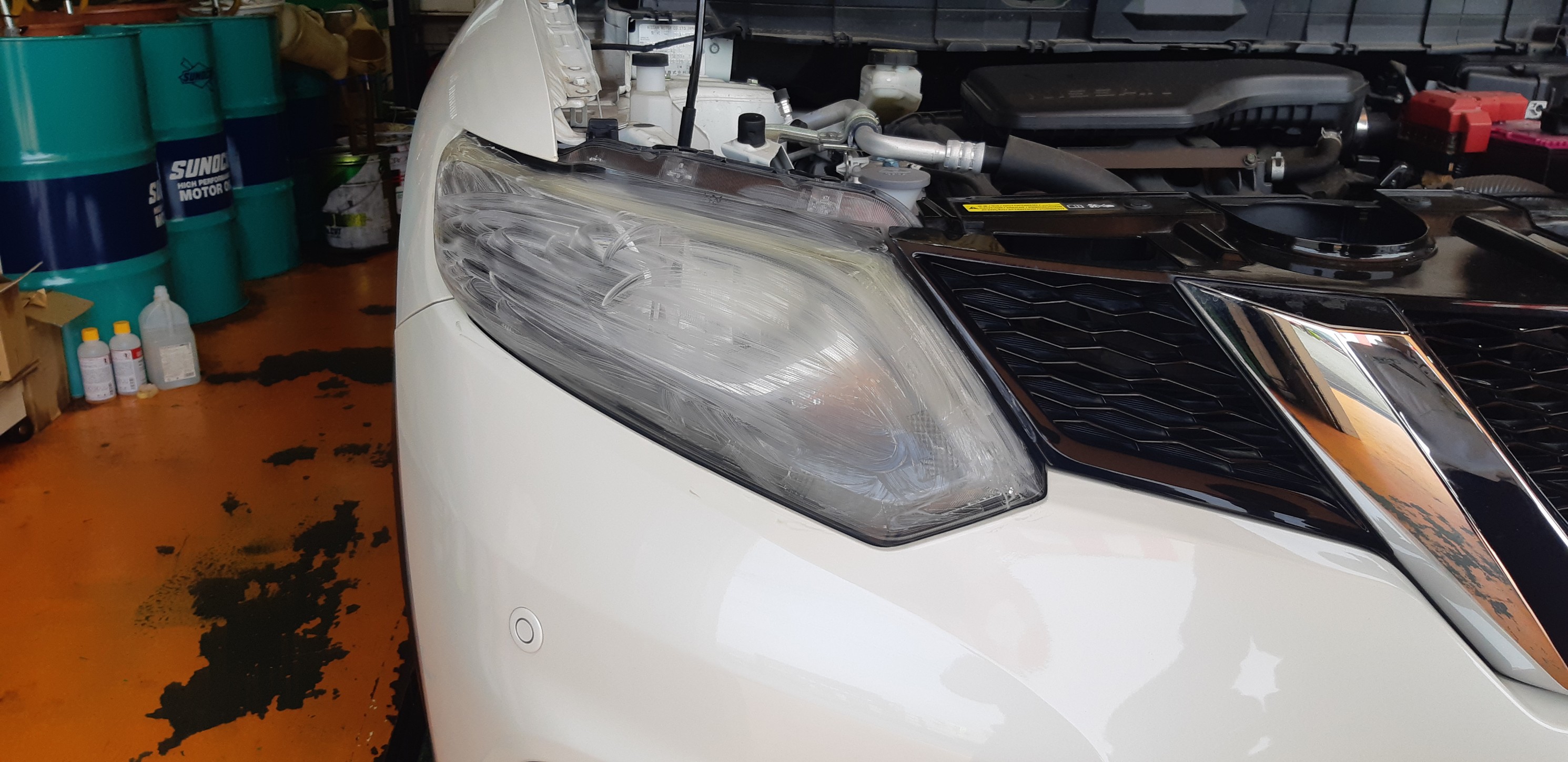 ヘッドライトコーティングは、表面のコートを剥離し、