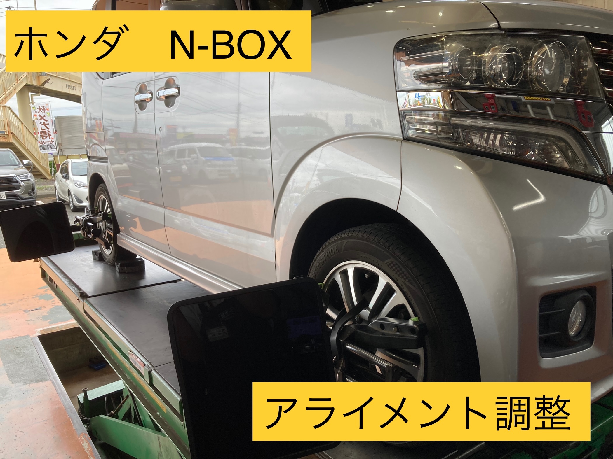ホンダ N-BOX アライメント調整!※走行中ハンドルがブレる為、走行中の安定性を良くしたい為