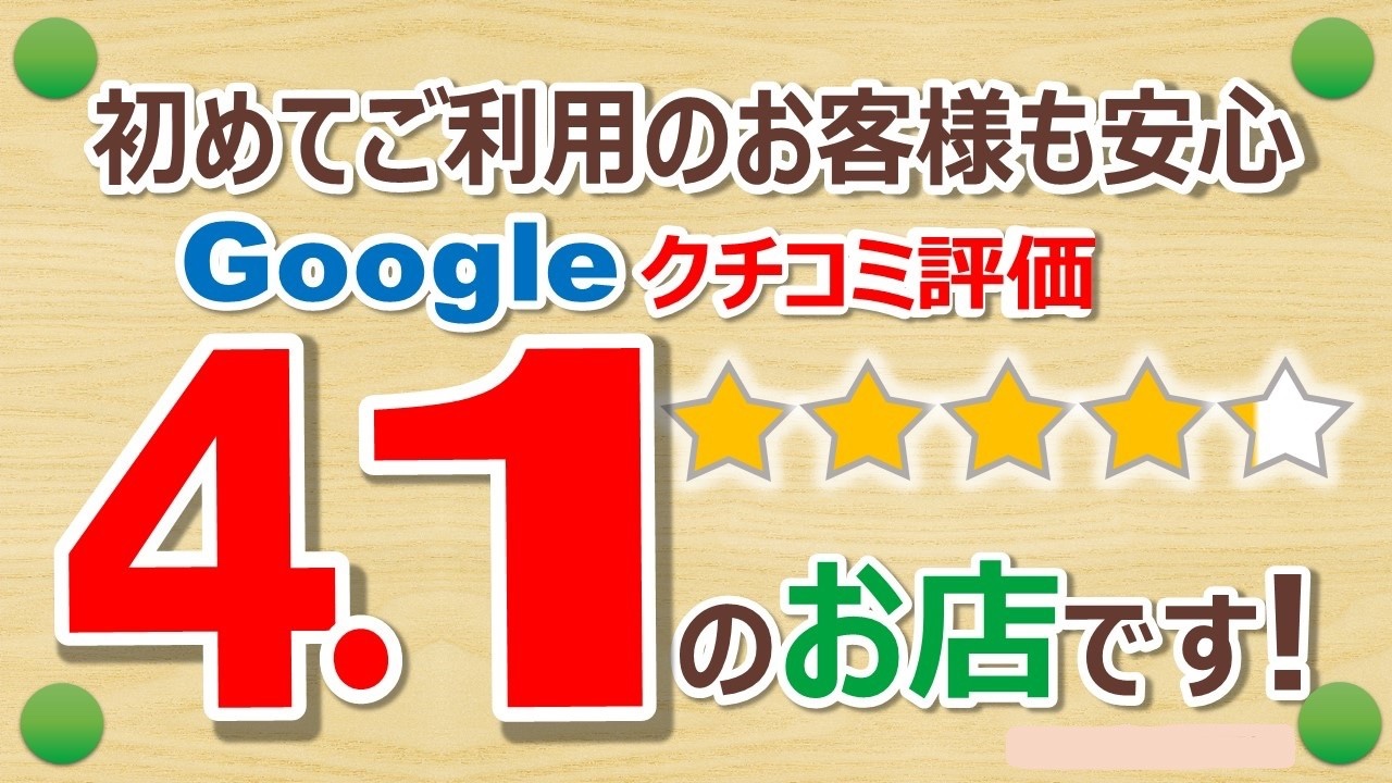 当店はGoogle口コミ評価4.1のお店です。