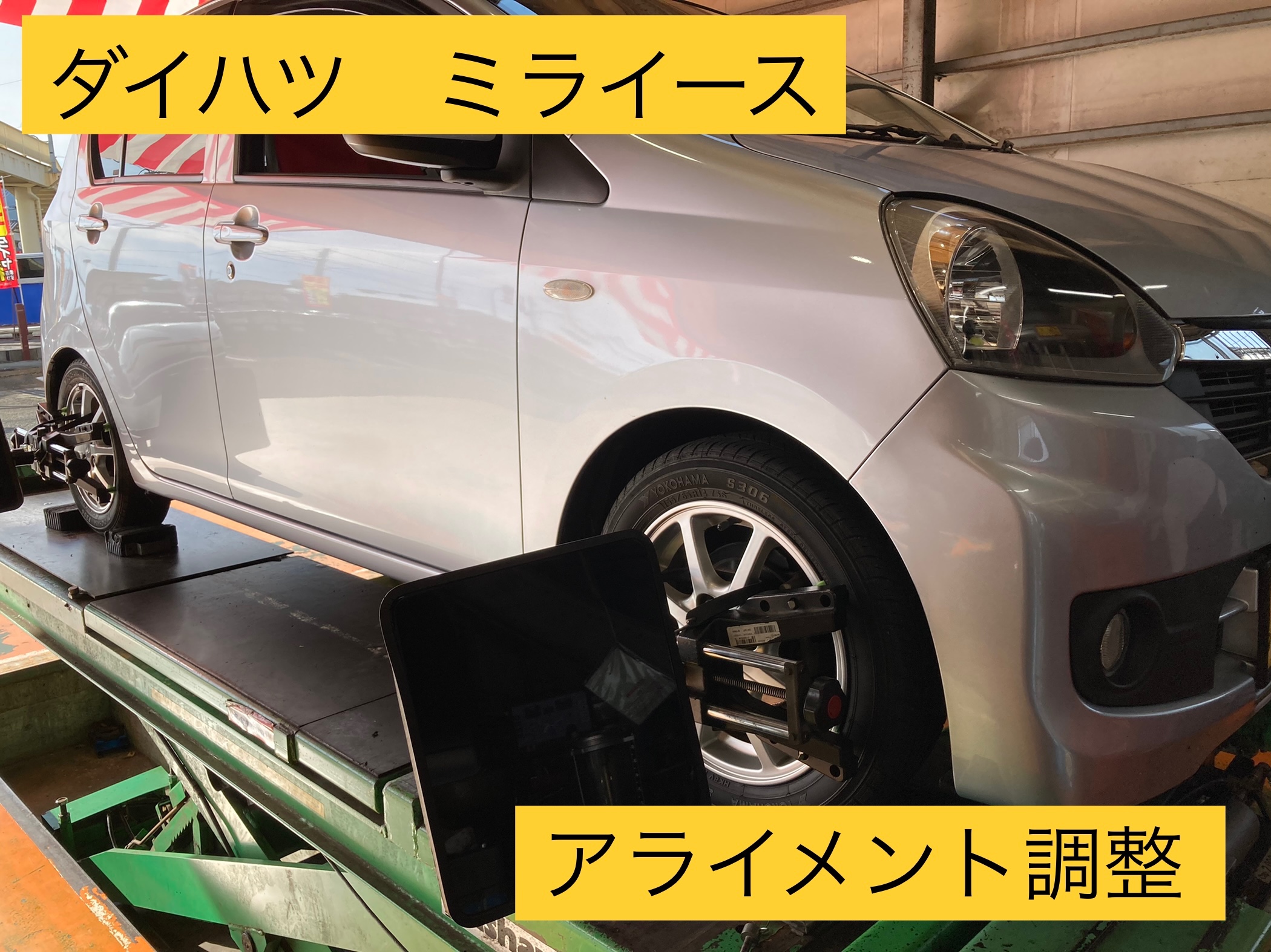 ダイハツ ミライース アライメント調整!※ダウンサスを取り付け後。走行中ハンドルのブレや走行中の操縦安定性を良くしたい為!
