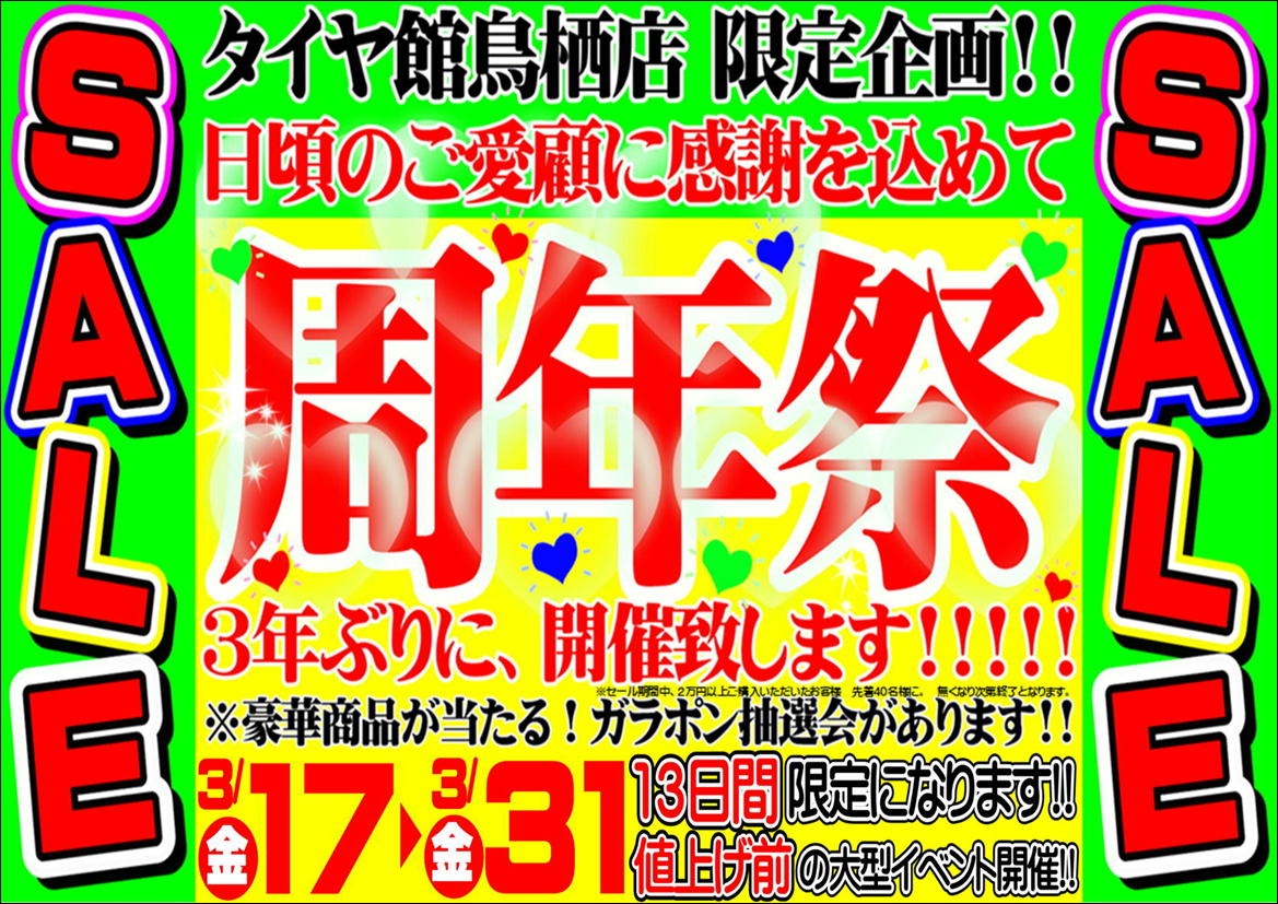 3年ぶりの周年祭SALEを開催いたします!!
