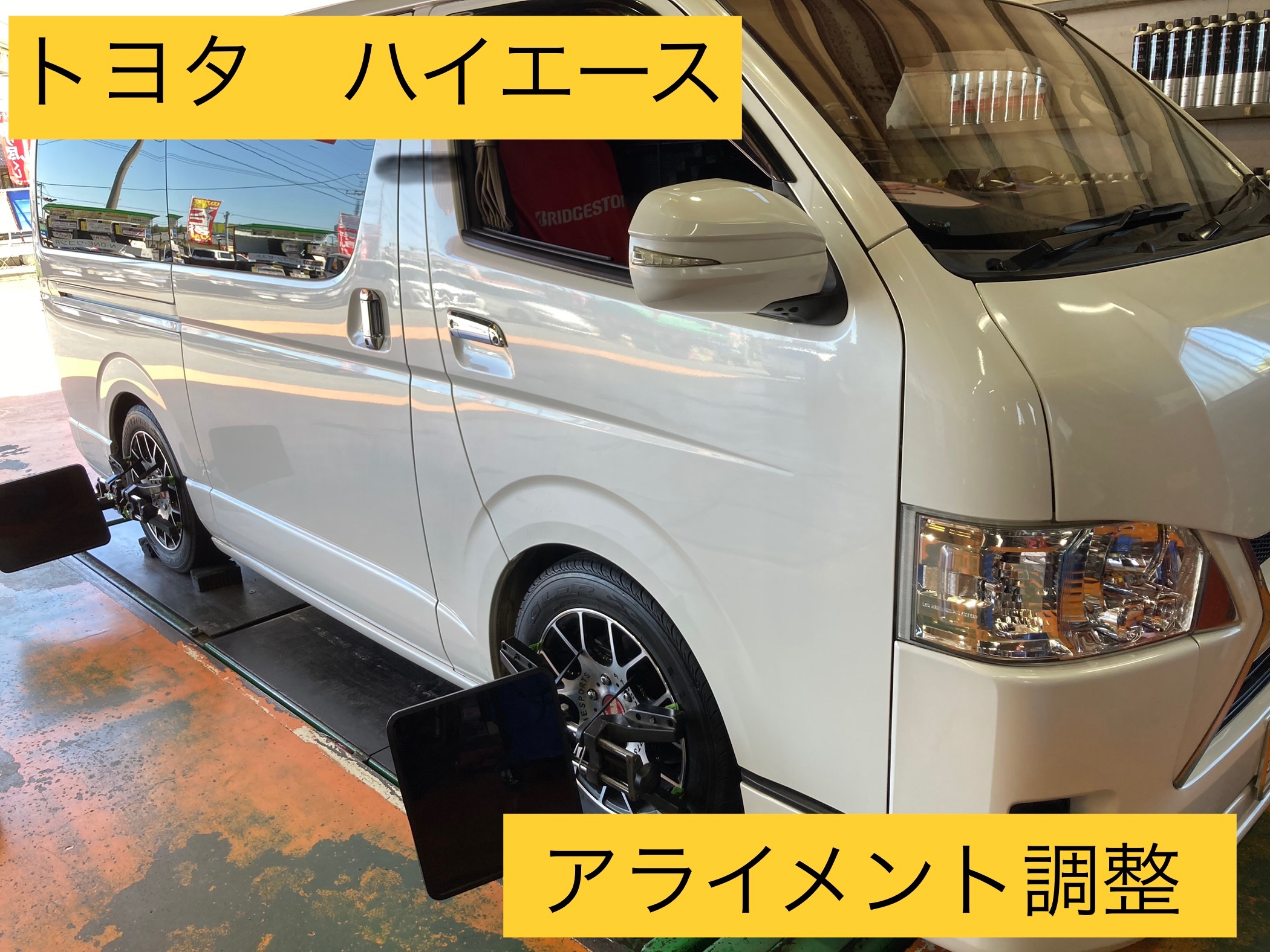 トヨタ ハイエース アライメント調整!※タイヤ・ホイール・足廻りこうかんご、内側が外側に比べて早く減っている。タイヤをキレイに使用し長持ちをしてもらい為!