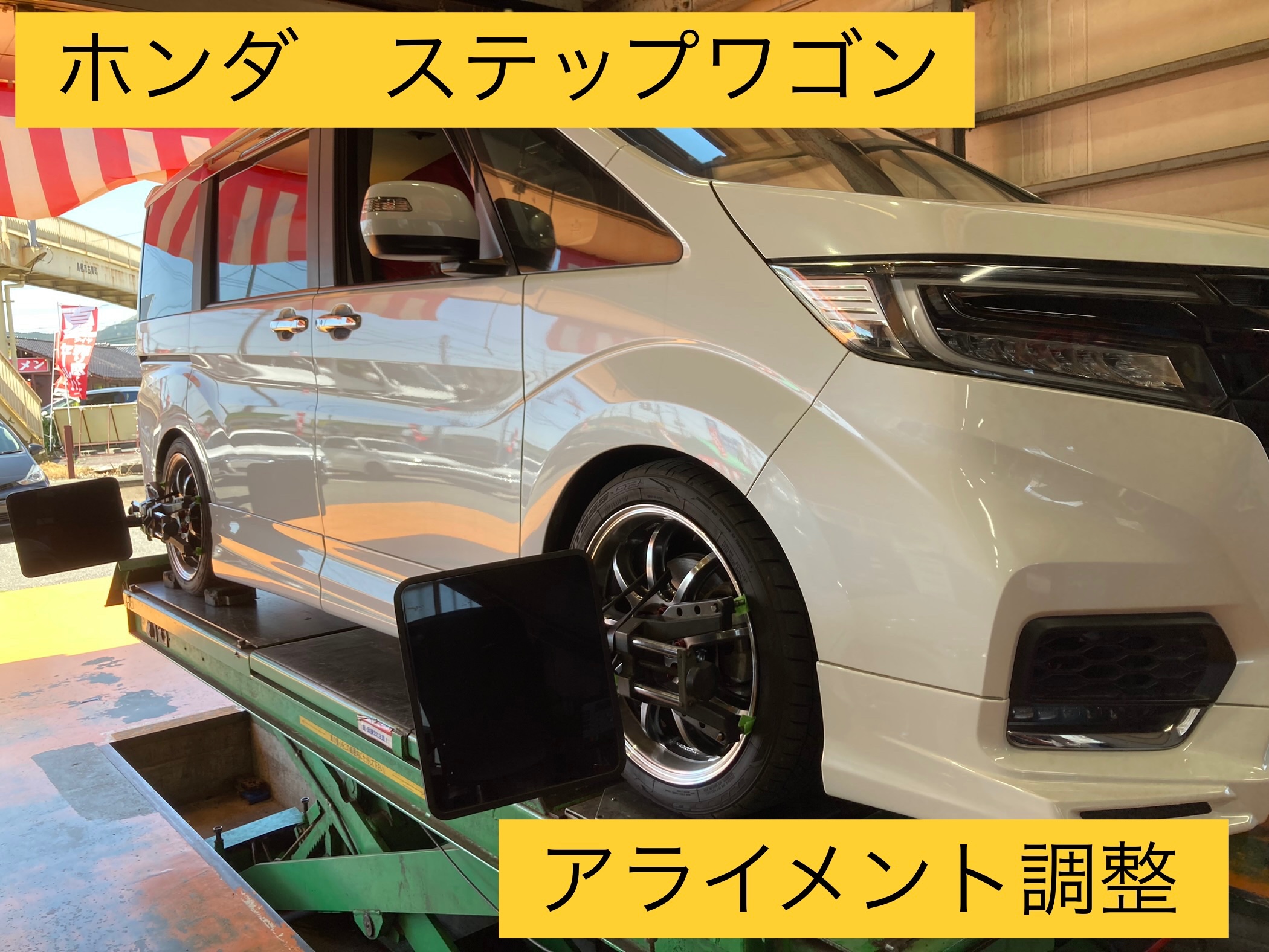 ホンダ ステップワゴン アライメント調整!※車高調整後、内側の減り方がおかしく、タイヤの消耗が早かったので、キレイに減ってもらい為!