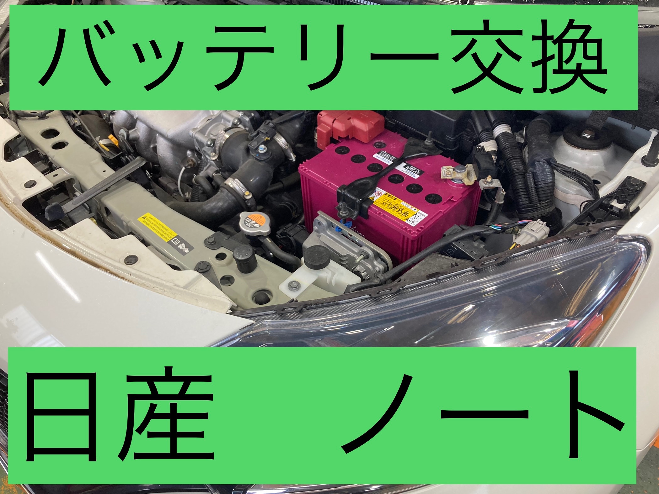 日産 ノート 新車から5年経った為、バッテリー交換! メンテナンスメニュー 《バッテリー交換》