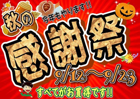 9/12(土)~9/23(水・祝) 秋の感謝祭を開催します\(^o^)/