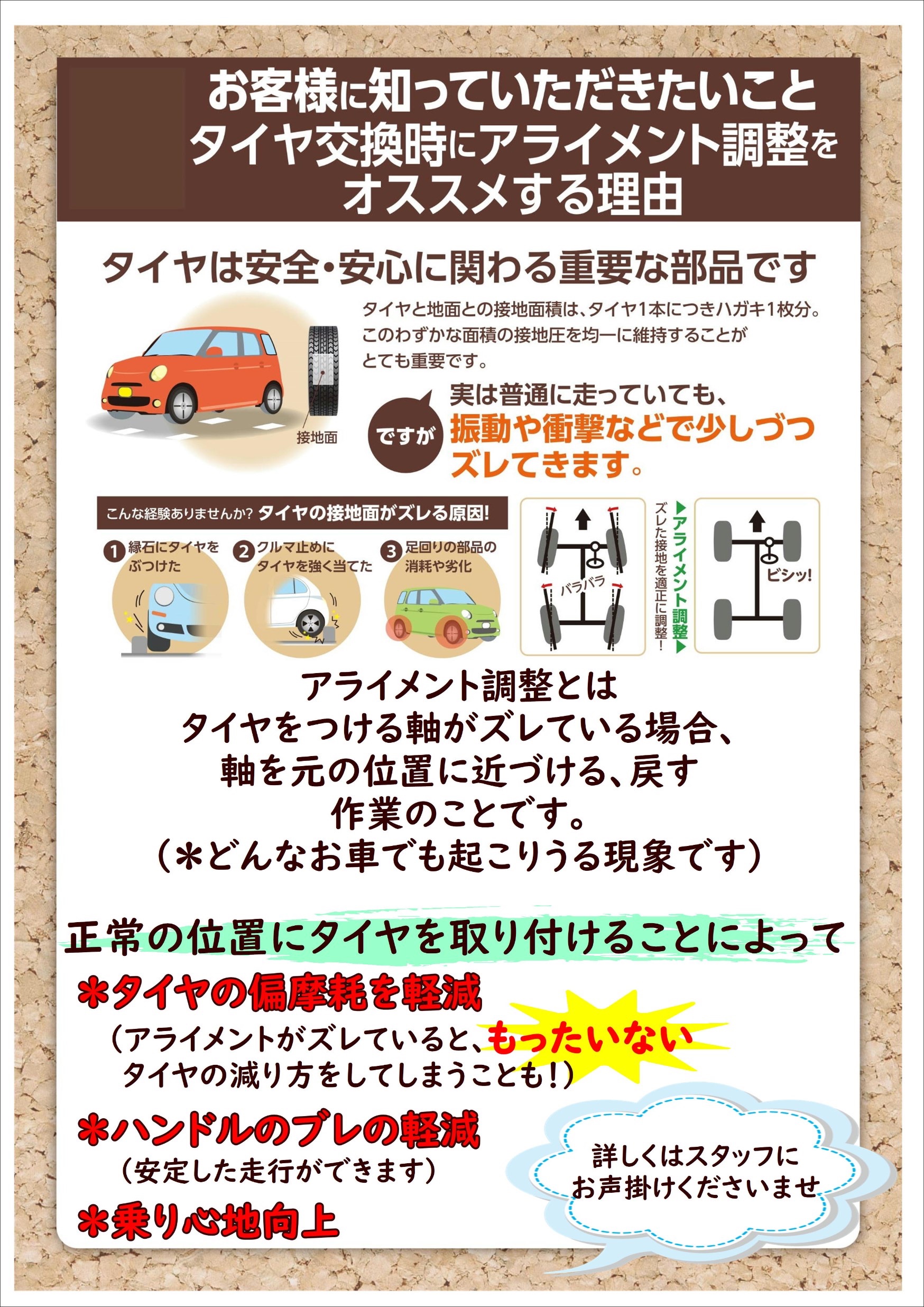 ( タイヤ交換 アライメント調整 エンジンオイル交換 バッテリー交換 エアコンフィルター交換 ワイパー交換 ヘッドライトコーティング 車内消臭・除菌 タイヤローテーション など)
