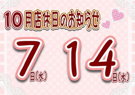 10月の店休日のお知らせデス。