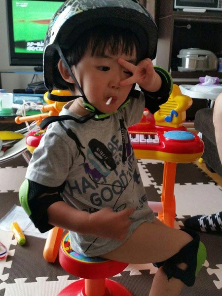ストライダーは持っていたけど、ヘルメットを持ってなかったので、