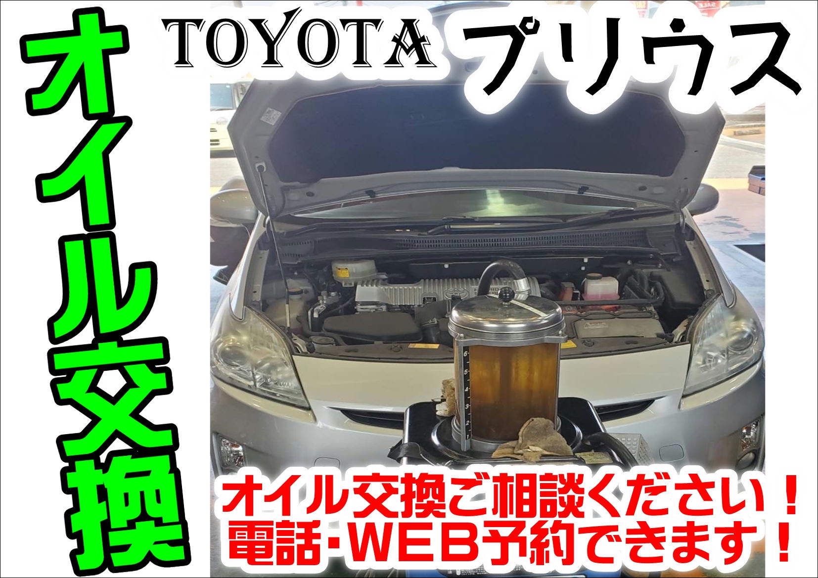 Google 口コミを見て!【WEBを見て初めてのご来店】トヨタ プリウス メンテナンスメニュー 《エンジンオイル交換》※お出かけ後の、お車の点検はされてますか?只今、無料点検実施中です!