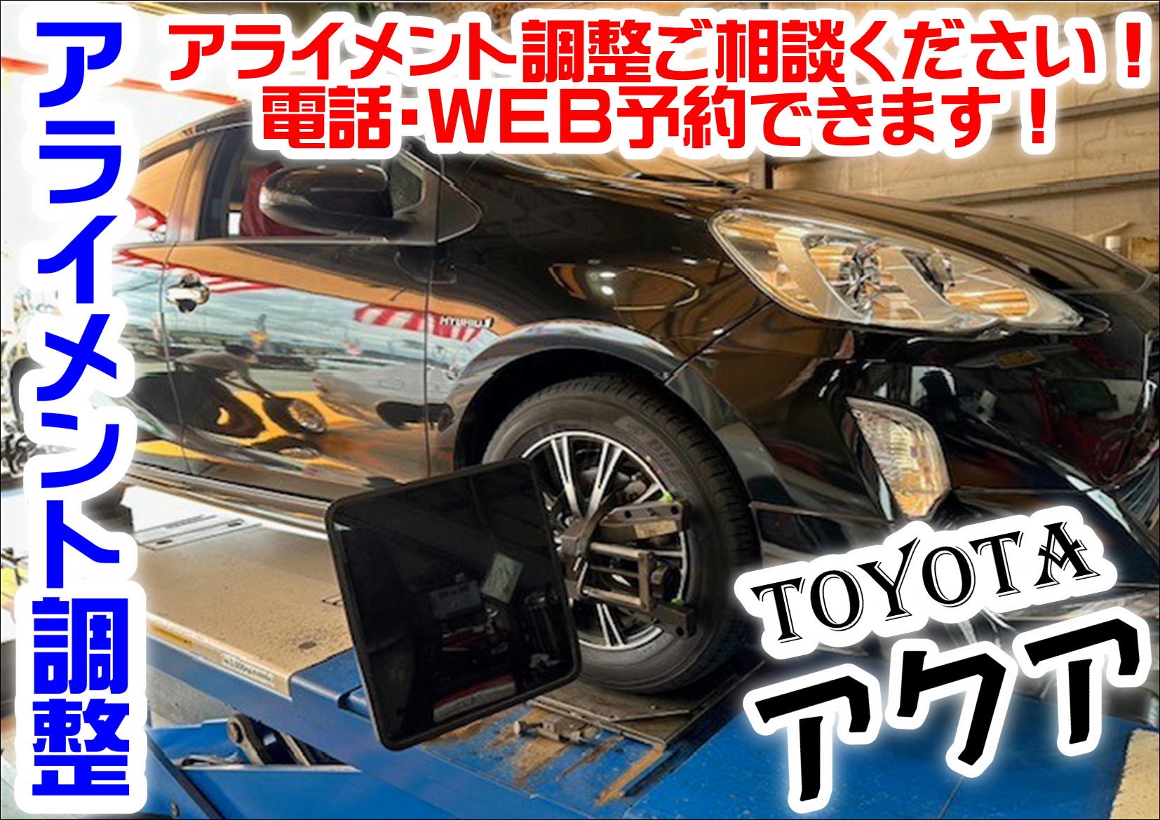【WEBを見て初めてのご来店】アライメント調整 トヨタ アクア ※タイヤを長持ちさせたい為!
