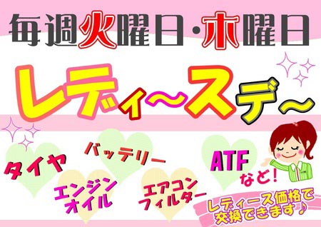 今日、火曜日は女性にお得なレディースデ~です☆