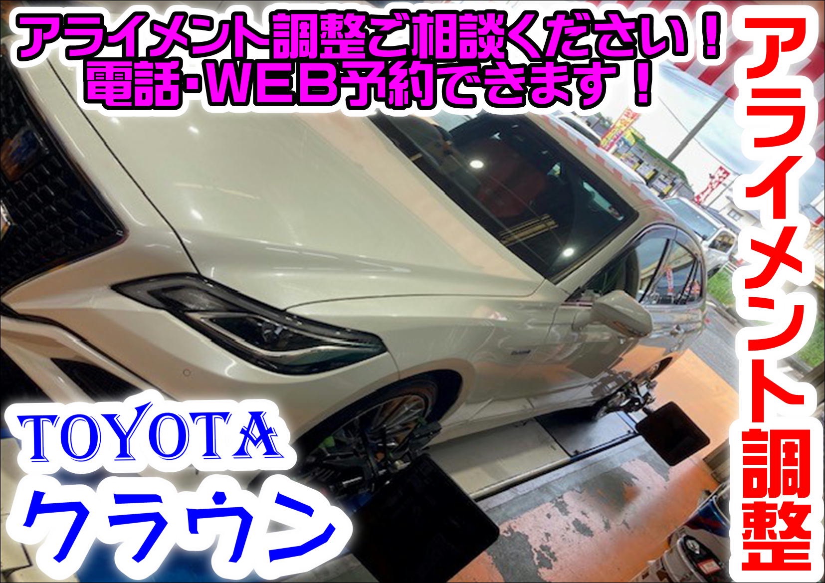 【WEBを見て初めてのご来店】アライメント調整 トヨタ クラウン ※タイヤ交換前、リア内側の減りが早かったので、今後はタイヤを長持ちさせたい為!