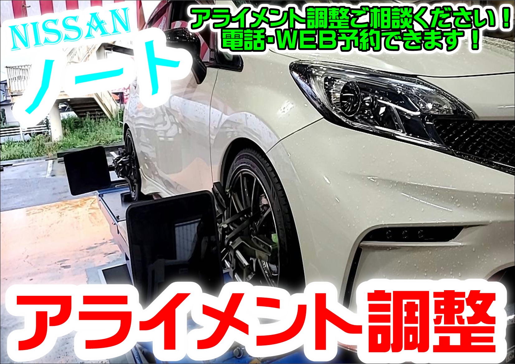 【WEBを見て初めてのご来店】アライメント調整 日産 ノート ※内側の減りが早い為!タイヤを長持ちさせたい為!