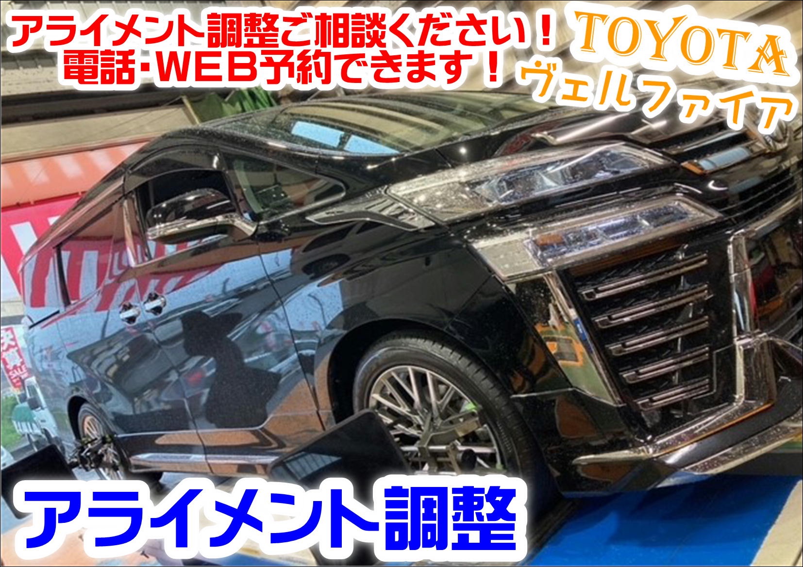 【WEBを見て初めてのご来店】アライメント調整 トヨタ ヴェルファイア ※タイヤ交換前、フロントタイヤの内側が早く減っていたので、今後はタイヤを長持ちさせたい為!