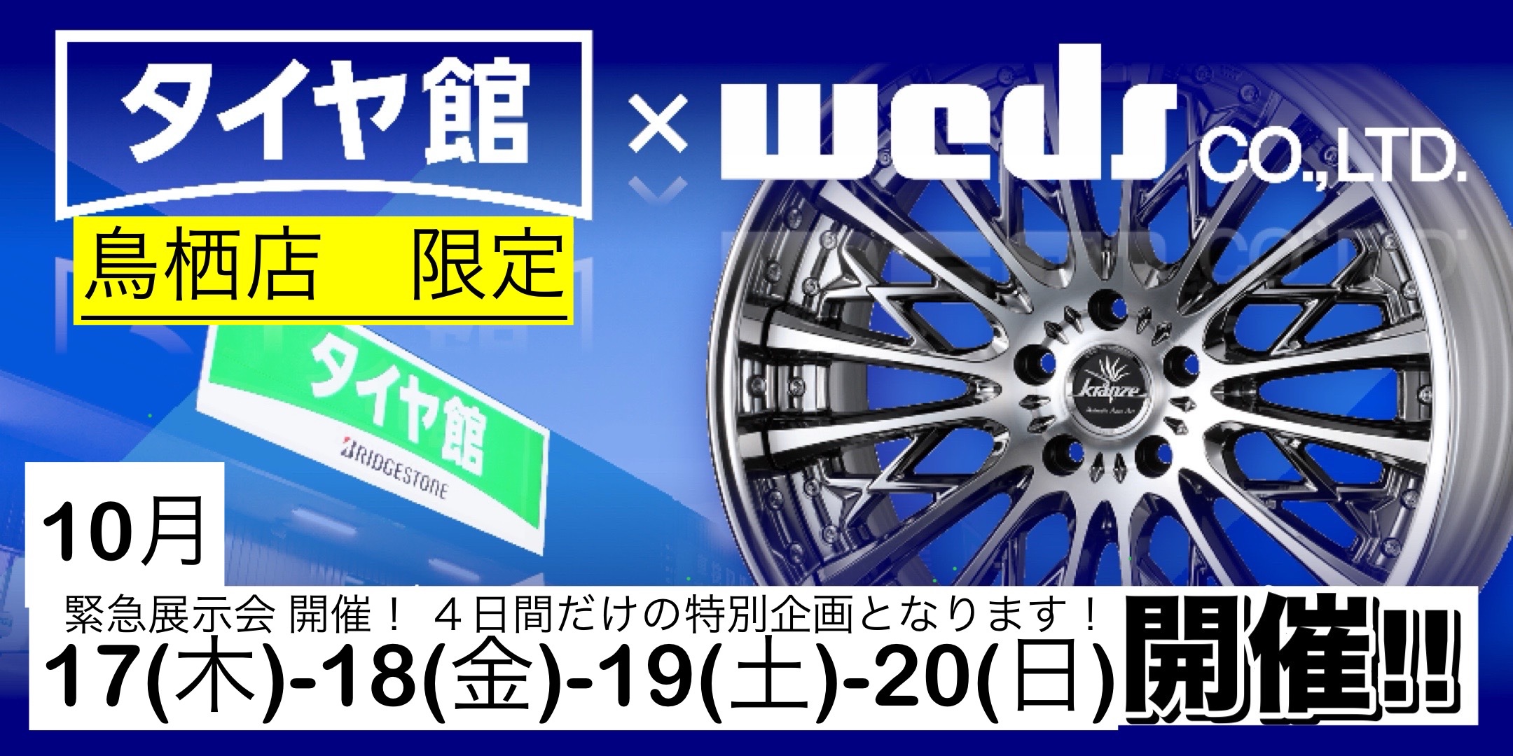 *緊急報告* 10月17日(木曜)〜10月20日(日曜) アルミホイールのWeds(ウェッズ)展示会 開催のお知らせ! 4日間限定で、店長赤字決算価格で大放出!⭐︎★