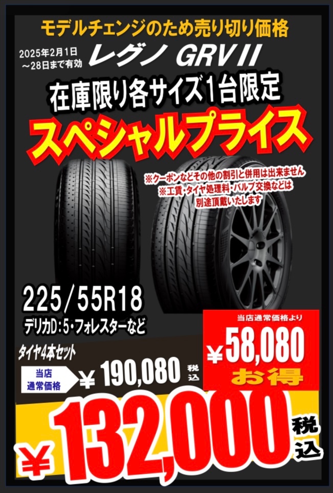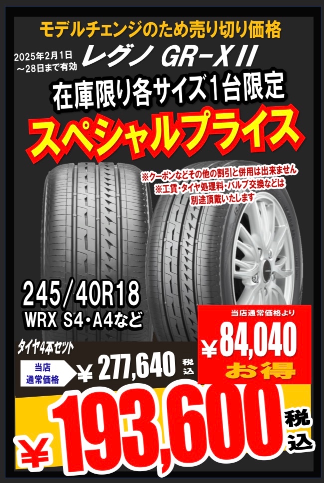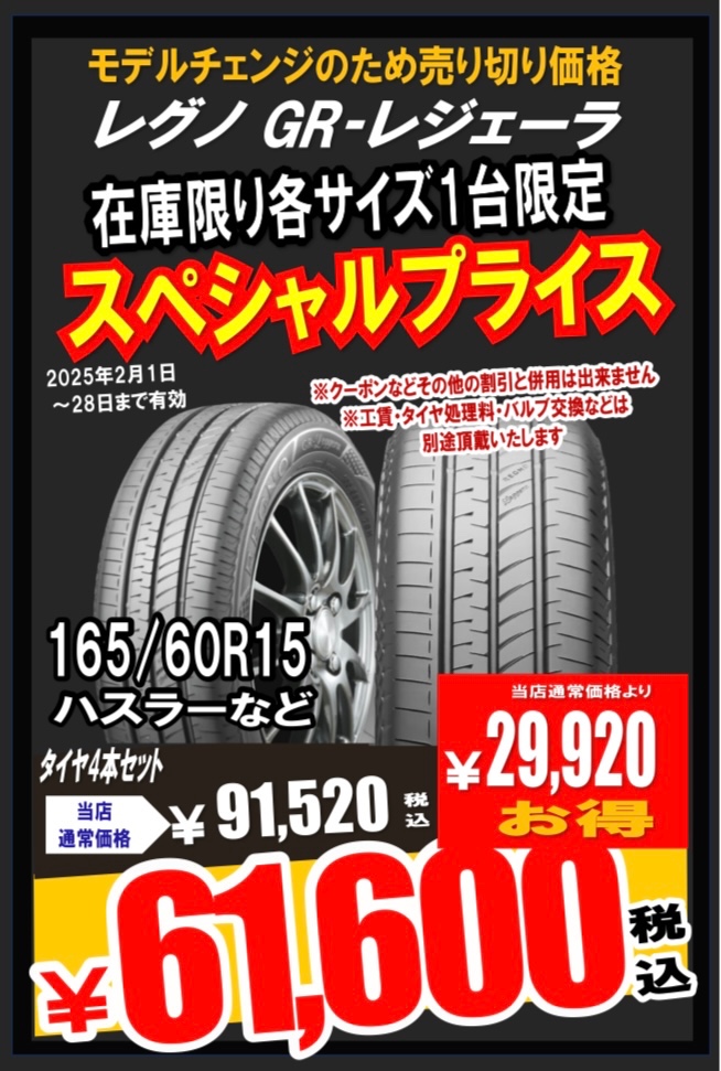 ★☆タイヤが安い!『プレミアムタイヤセール!!!!!』+『レグノタイヤ 旧品アウトレット特価で大放出!』+『アルミホイール&車高調&ダウンサス キャンペーン 2025年 第1発目』 ★☆開催!