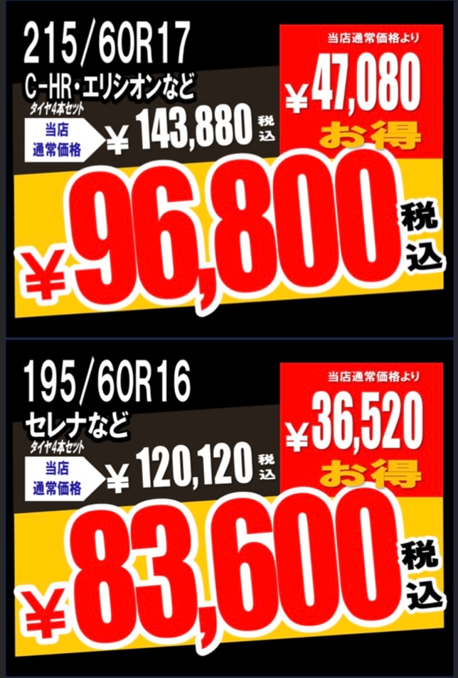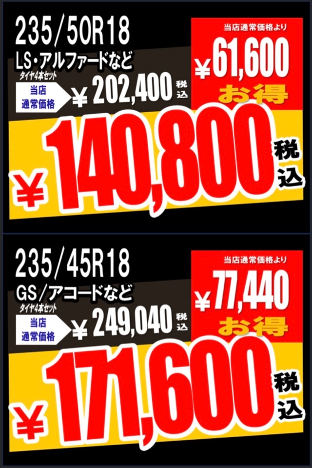『タイヤが安い! プレミアムタイヤセール!!!!!』開催!!!!全ての夏用/冬用タイヤ、がお安くなっております(*^ω^*)♬♬♬