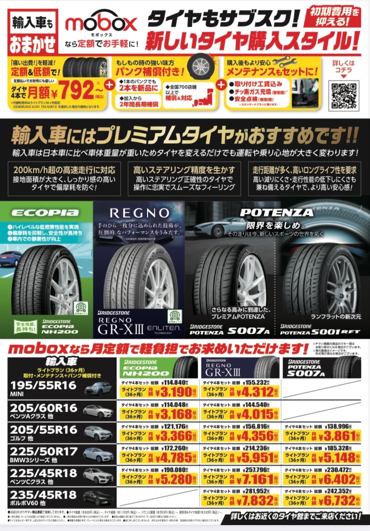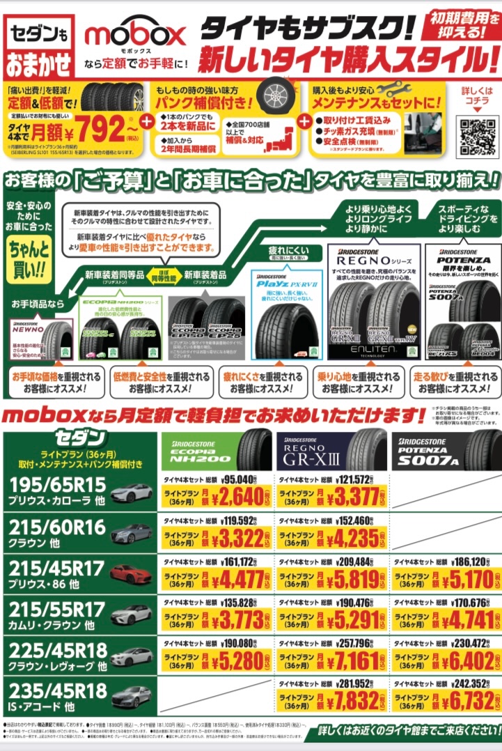 タイヤのサブスク「Mobox・モボックス」のご紹介♪