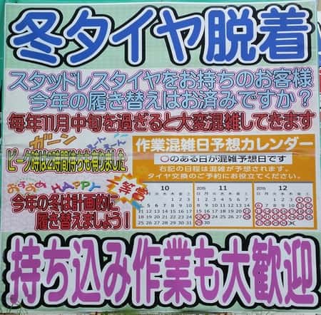 スタッドレスタイヤをお持ちのお客様はお早めにタイヤ館でお履き替え下さい。