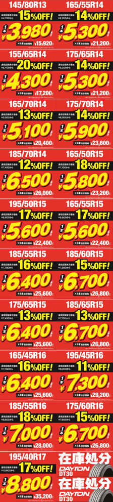 ★⭐︎ ブリヂストン工場製 お買得タイヤ(DAYTON=デイトン)がさらにお得に!!『WEBを見た!』をお伝え下さい!! ⭐︎★