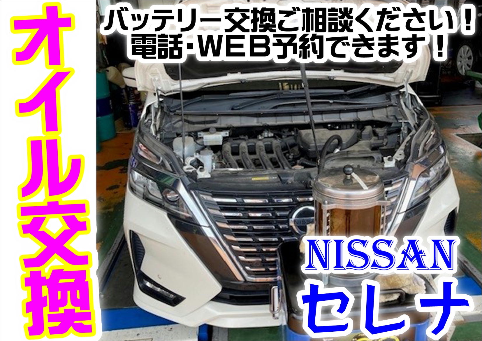 Google 口コミを見て!【WEBを見て初めてのご来店】日産 セレナ《エンジンオイル交換》※お出かけ後の、お車の点検はされてますか?只今、無料点検実施中です!