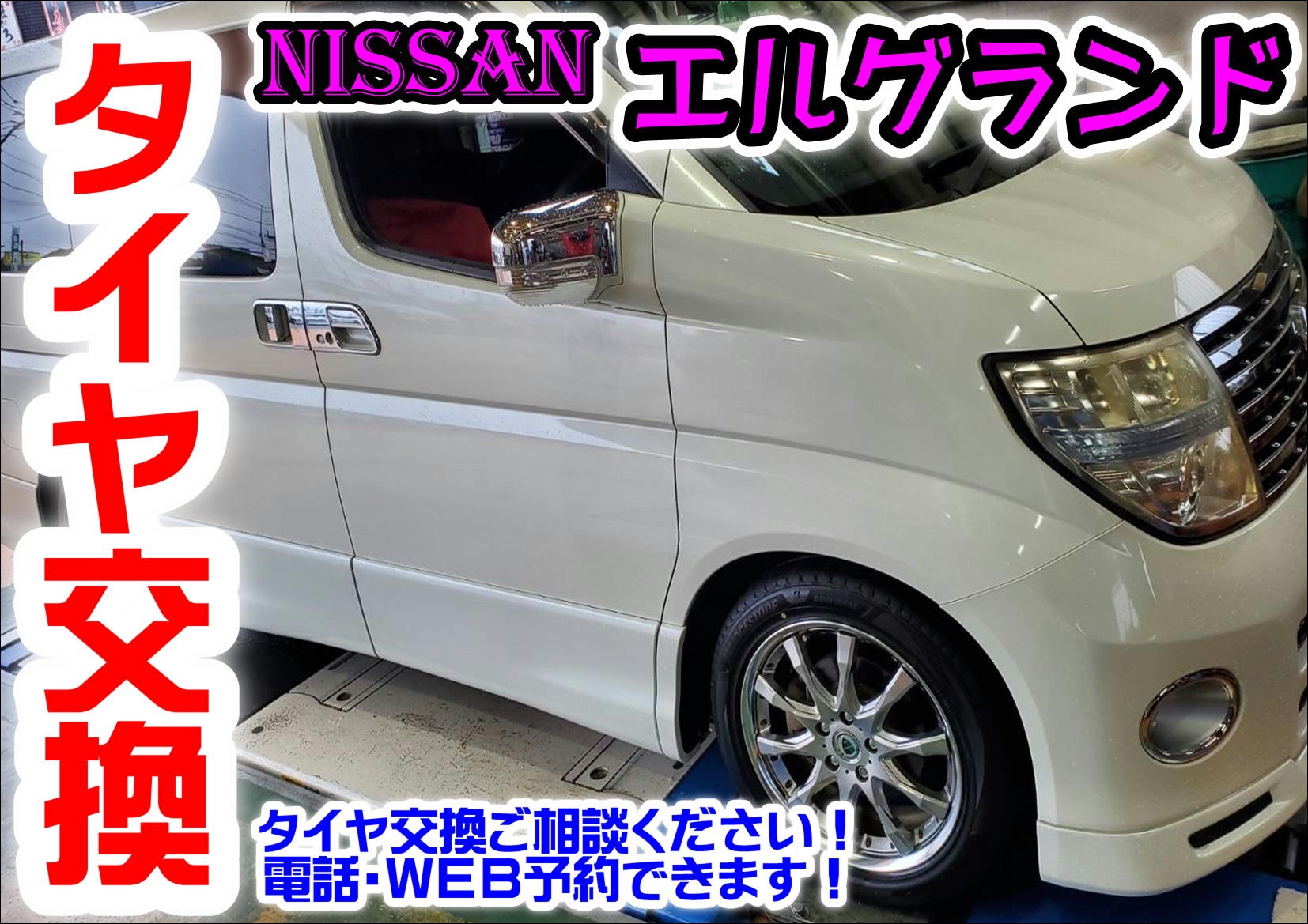 当店HPを見て!【WEBを見て初めてのご来店】3年半経った、タイヤ交換 日産 エルグランド【REGNO(レグノ)GR-XIII TYPE RV】